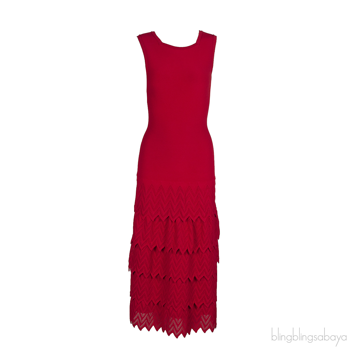 This Red Layered Knit Sleeveless Dress from Alaia is crafted from 78% Viscose, 16% Polyester, 4% polyamide and 2% Elastane. This dress features a square neckline, sleeveless, zip fastening at rear, mid length hem with layered skirt.