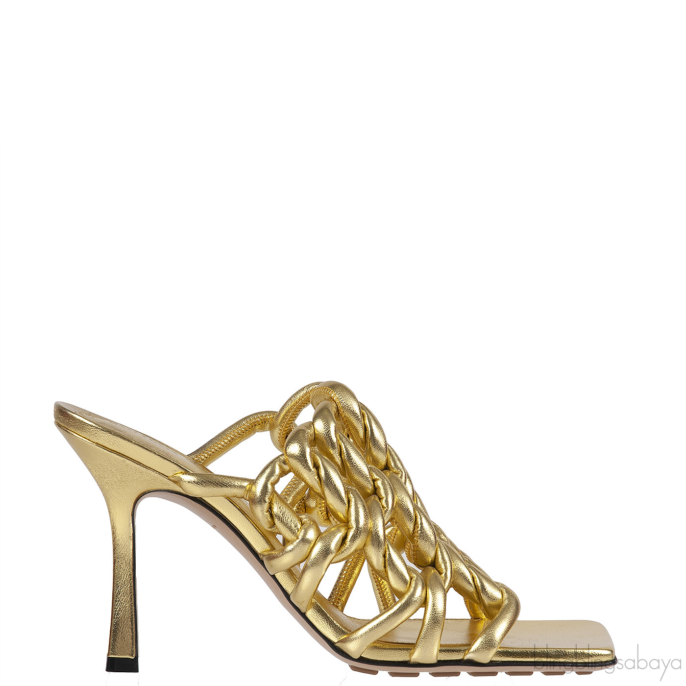 Bottega Veneta Metallic Gold Reflection Weave Square Toe Sandals