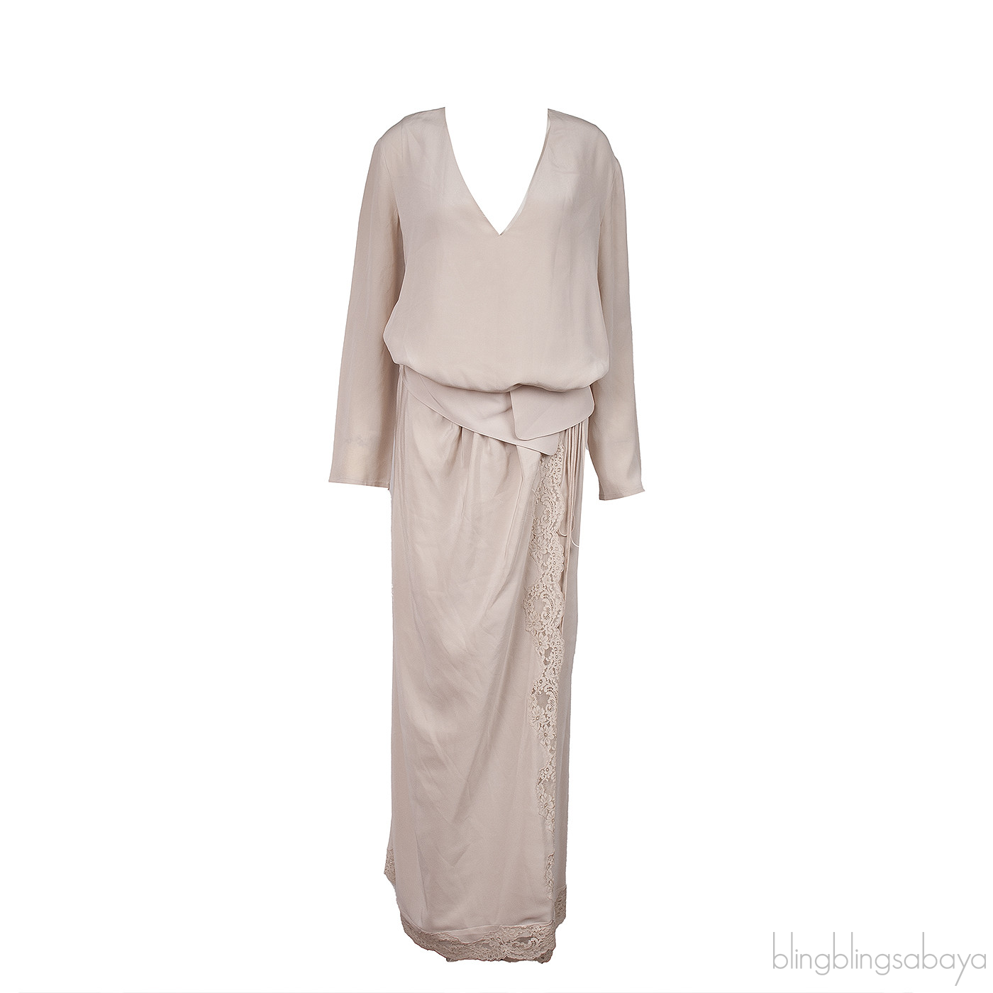 Chloe Albaster Long Sleeve Top and Lace Trim Maxi Skirt