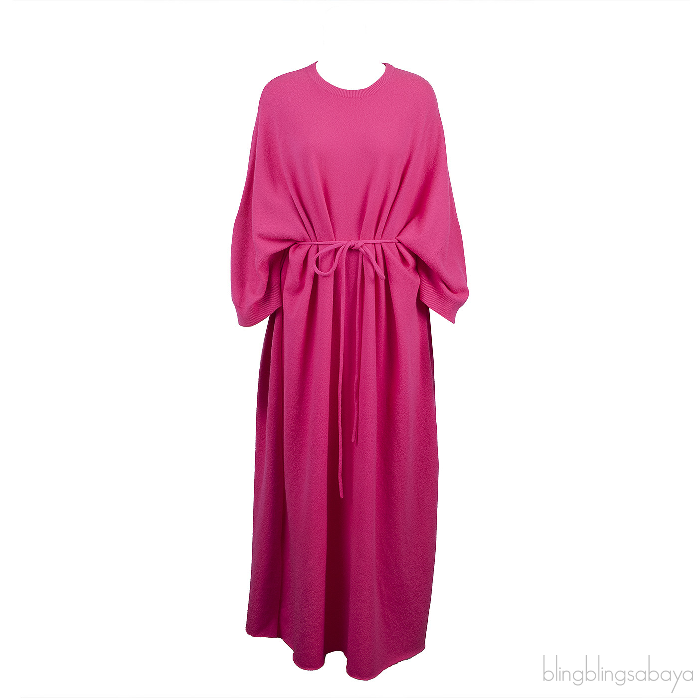 Extreme Cashmere N°227 Ghost Belted Neon Cashmere-blend Maxi DressExtreme Cashmere N°227 Ghost Belted Neon Cashmere-Blend Maxi Dress is crafted from a premium cashmere-blend composed of 88% cashmere, 10% nylon, and 2% spandex in a vibrant neon pink hue. Designed with a classic crew neckline and long sleeves, this pullover maxi dress features an oversized silhouette enhanced by a belted waist for effortless structure and comfort. The fluid maxi length completes the look with a relaxed yet elevated finish.