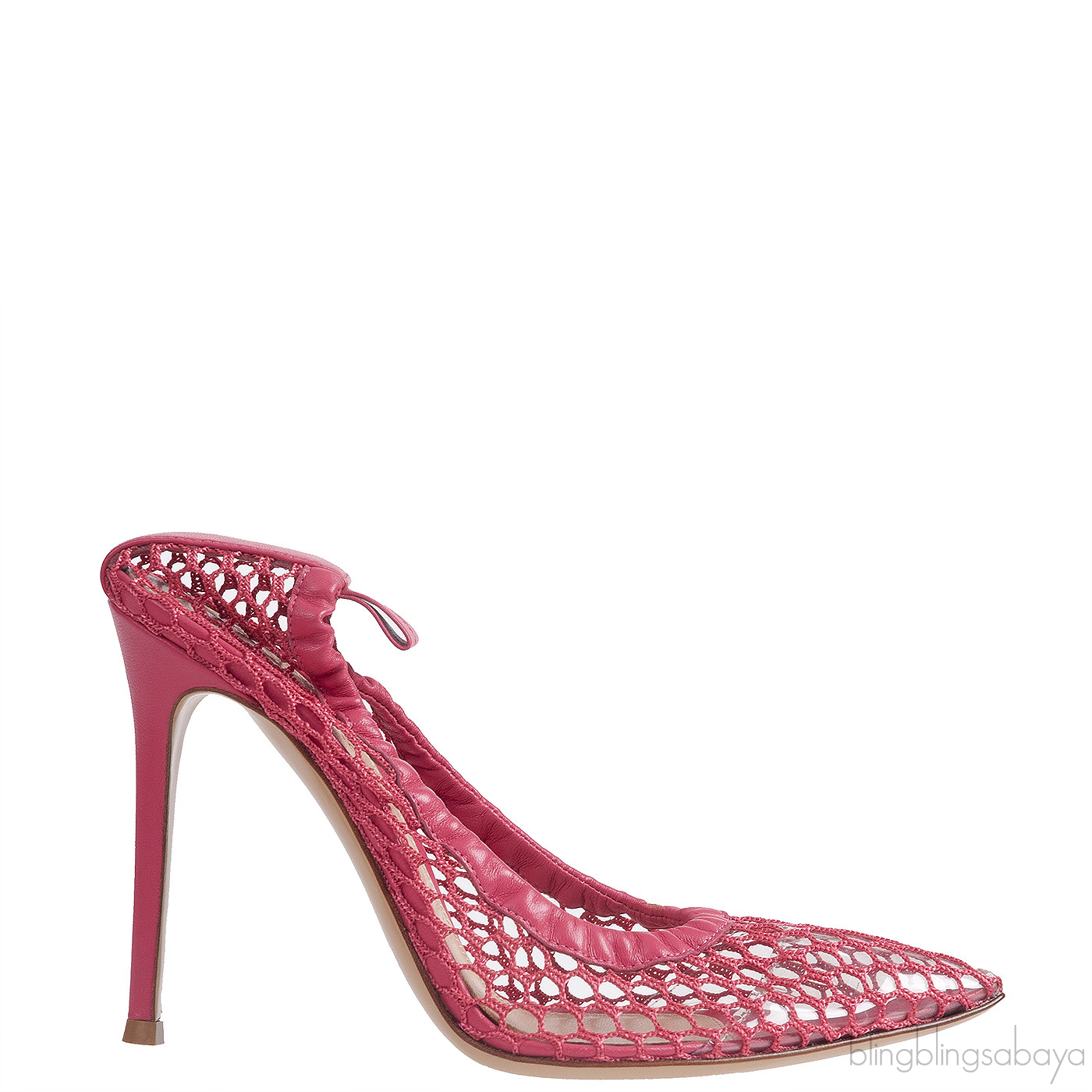 GIANVITO ROSSI Pink Leather Trimmed Fishnet Pump 38