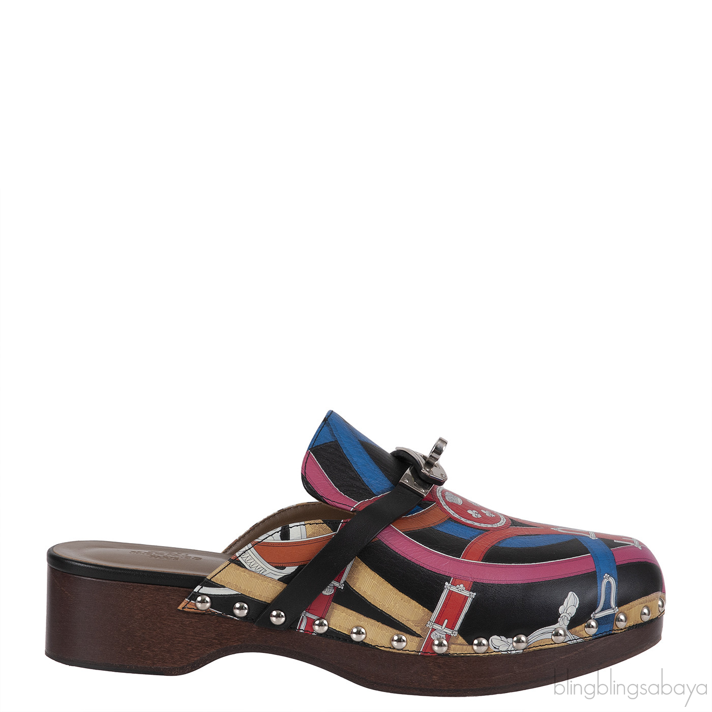 Hermes Carlota Multicolor Printed Cavalcadour Mules