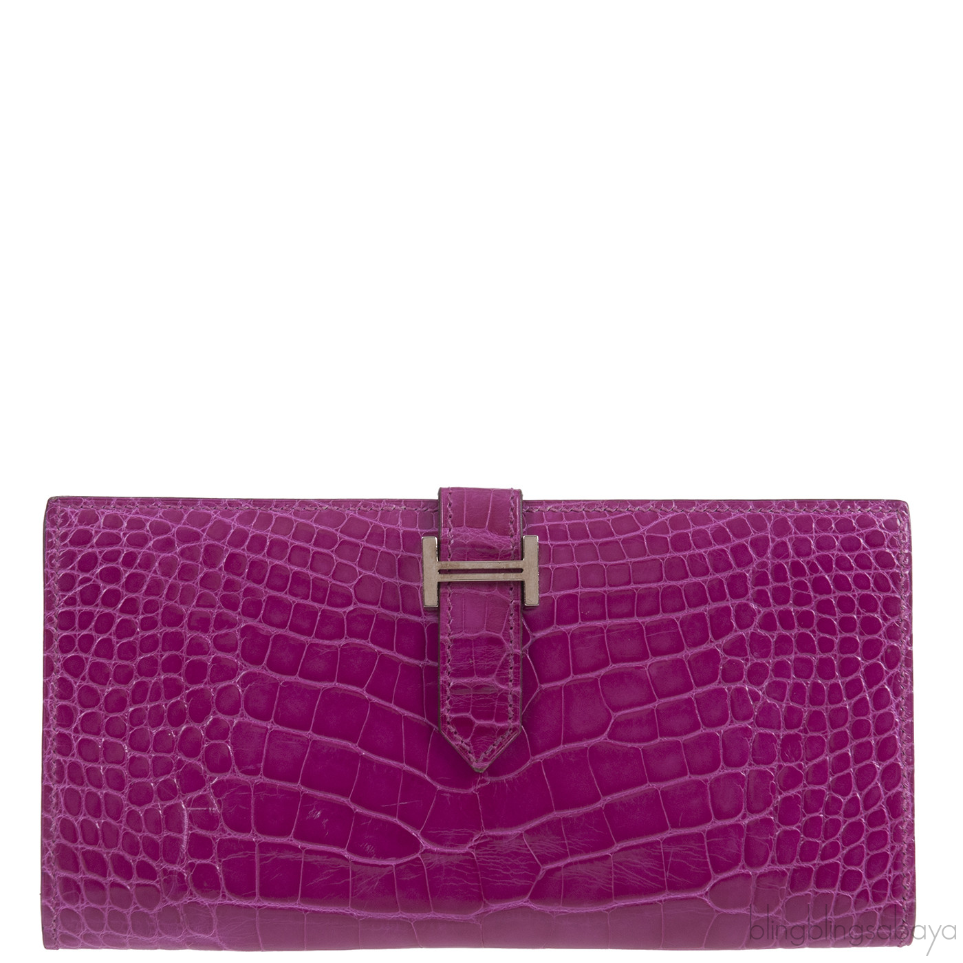 Hermes Bearn Rose Tyrien Crocodile Wallet