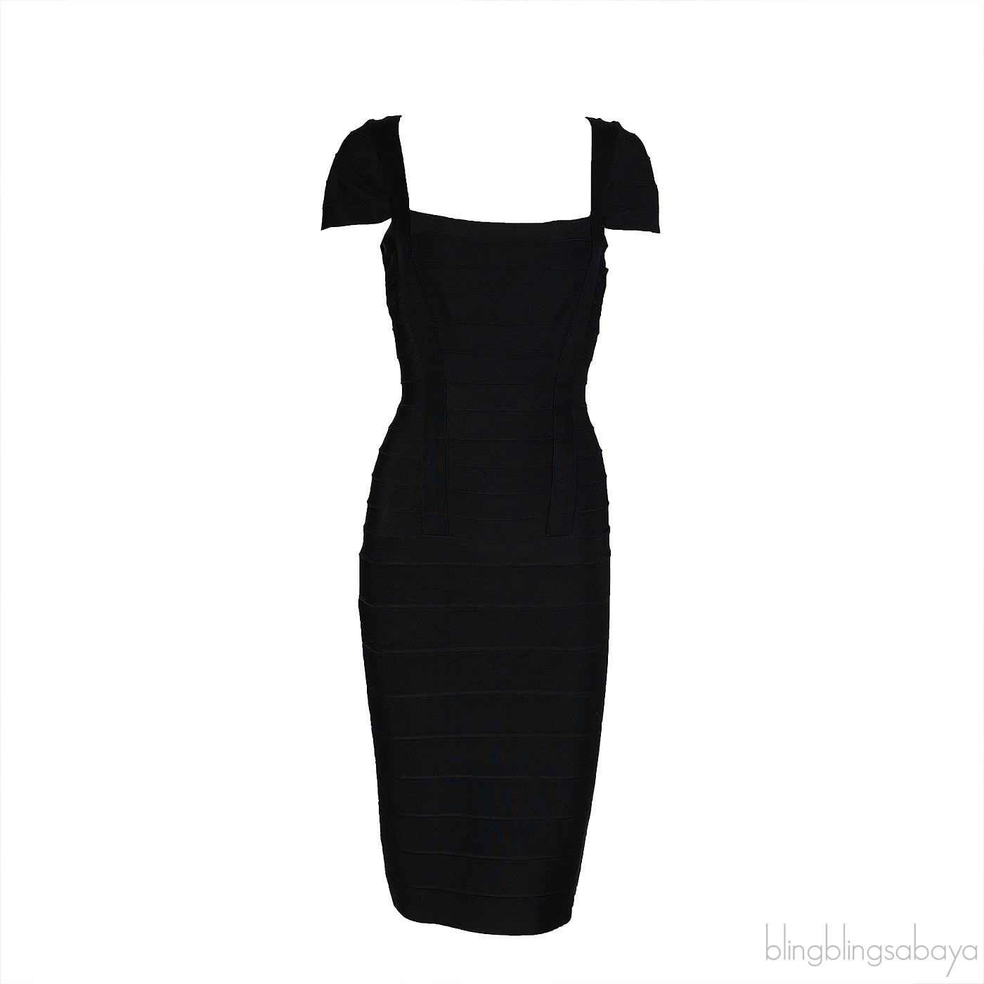 Herve Leger Black Bandage DressThis Herve Leger Black Bandage Dress is crafted from black elastic bandage fabric featuring a square neckline, cap sleeves, zip fastening at rear and mini length.
