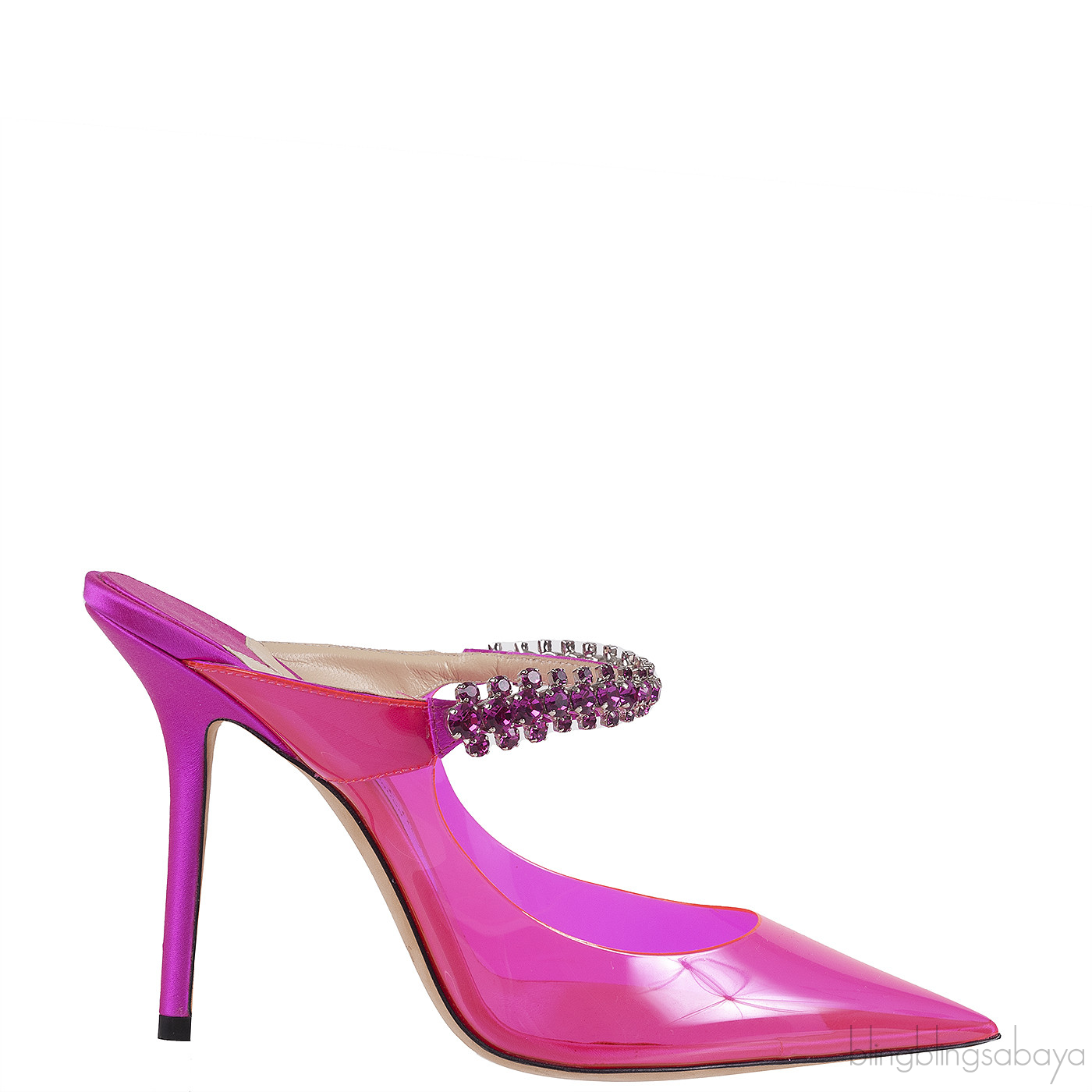 Jimmy Choo Bing Fuchsia PVC 100 mm Crystal Mule