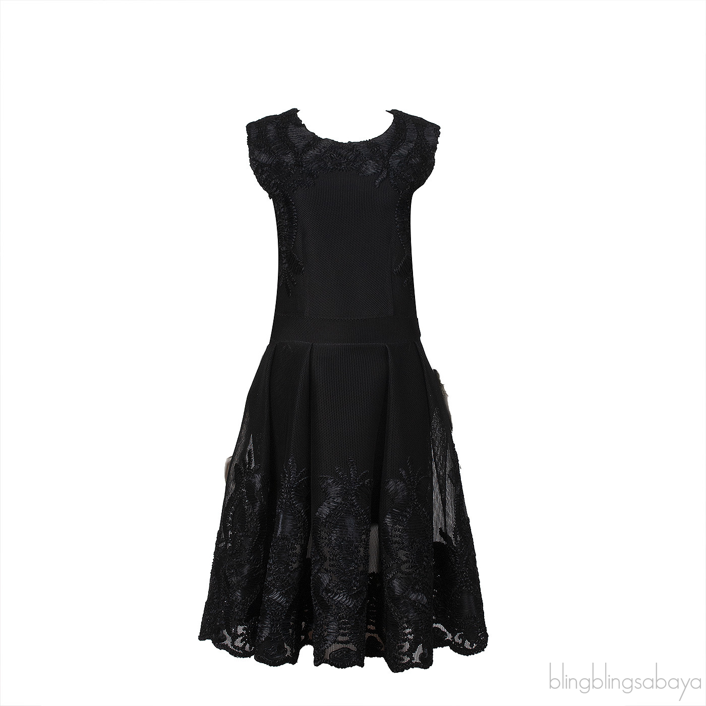 Maje Mesh Pleated DressThis Maje Mesh Pleated Dress is crafted from 100% Polyester fabric in black. This dress features a black mesh fabric with intricate trim detailing, round neckline, sleeveless, zip fastening at rear, pleated skirt and knee length hem.