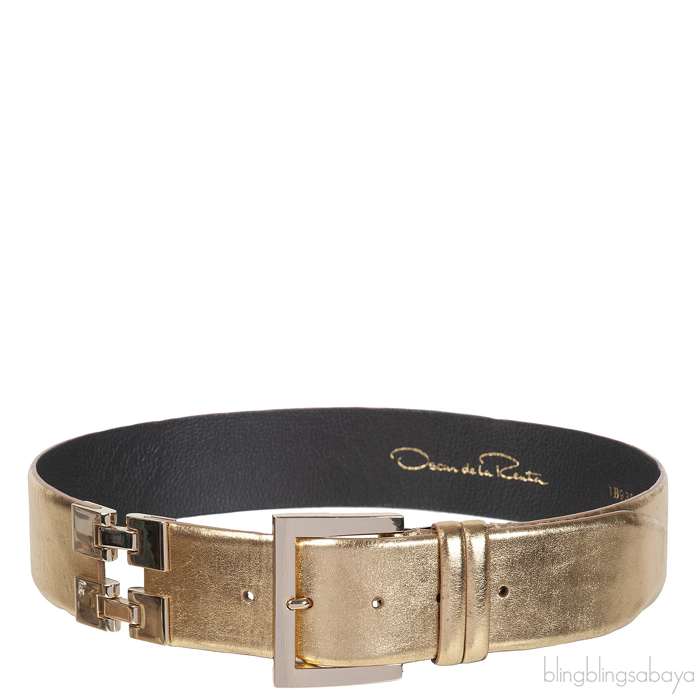 Oscar Dela Renta Metallic Gold Double Hinge Belt
