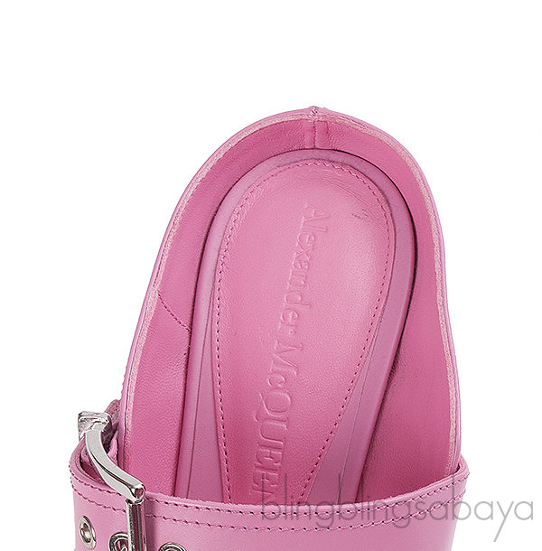 This Alexander McQueen Pink Punk Buckle Mules pair is crafted from pink calf leather and lined with leather. These mules features a pointed-toe silhouette with a metal toe cap, buckle detail, leather lined insole and sole and a high stiletto heel.