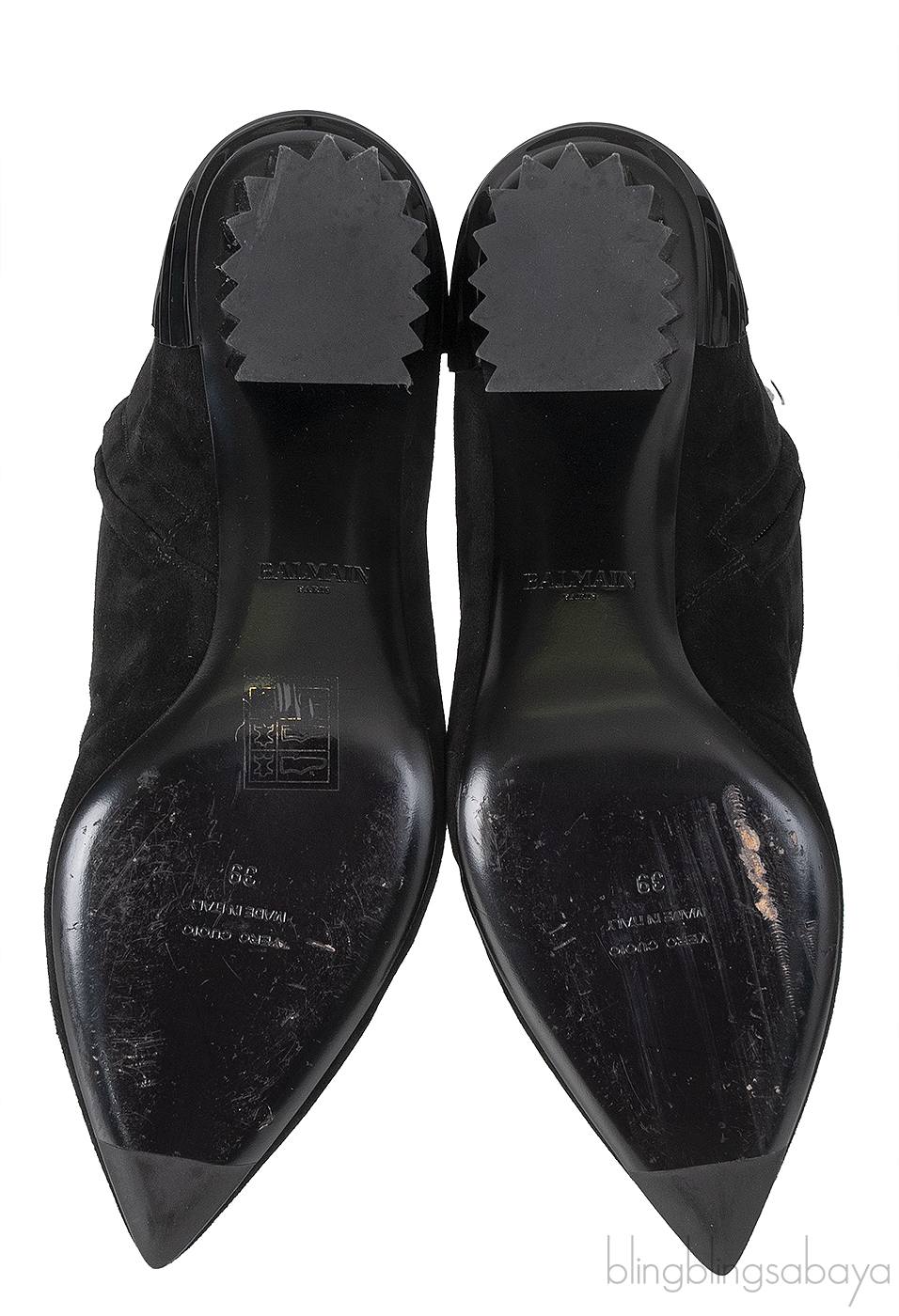 Black Pointed Toe Suede Ankle Boots from Balmain!