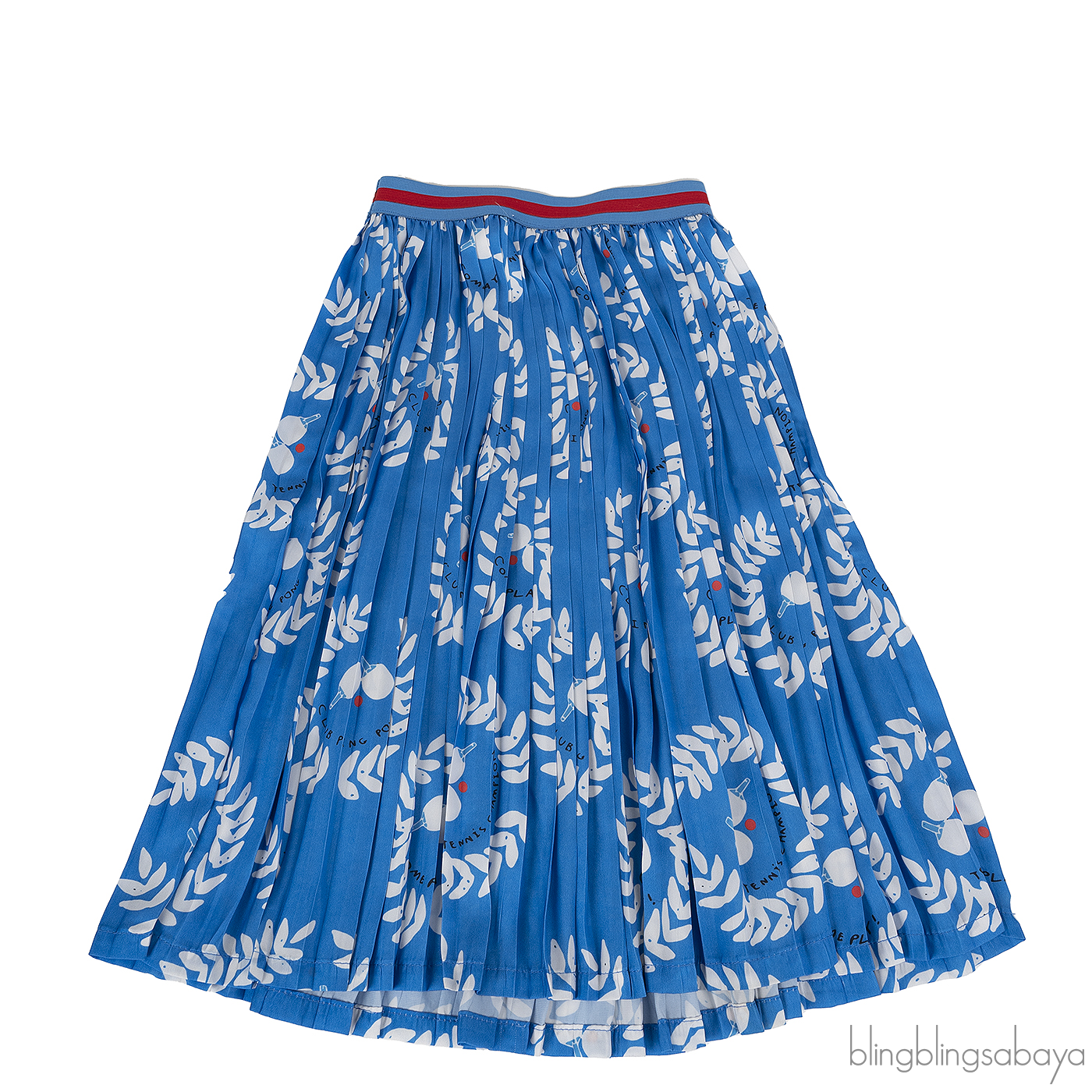 Beau Loves Ping Pong Club Printed Pleated Kid Skirt is crafted from blue printed fabric featuring a pleats design, ping pong club print all-over and stripes elastic waistline.