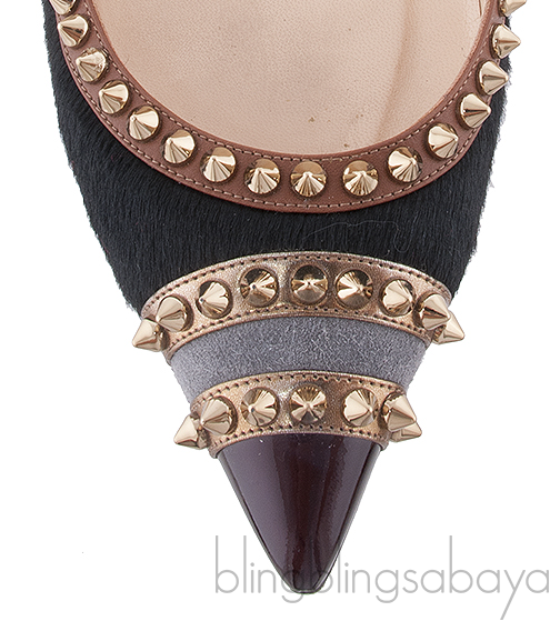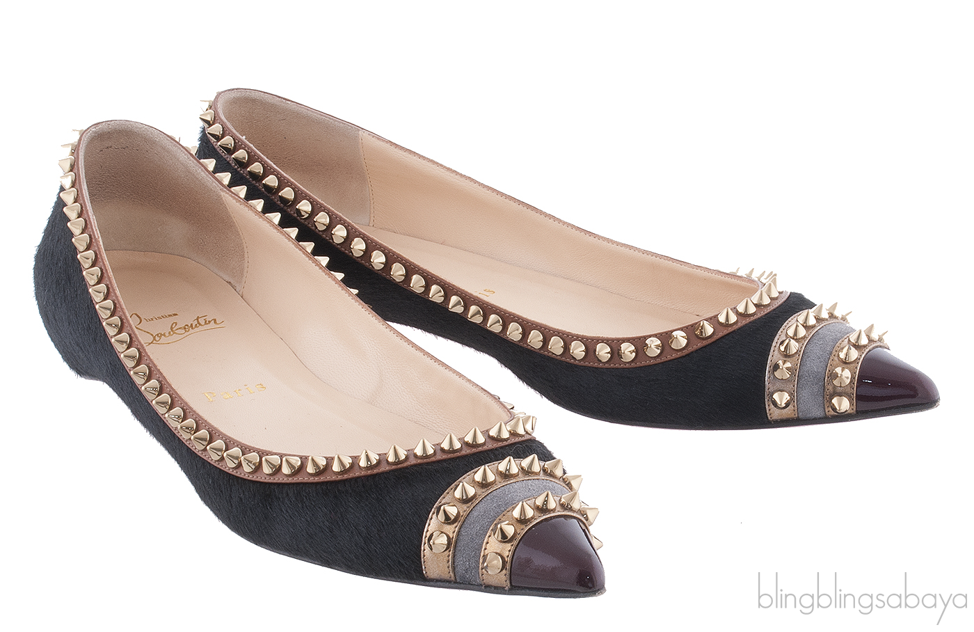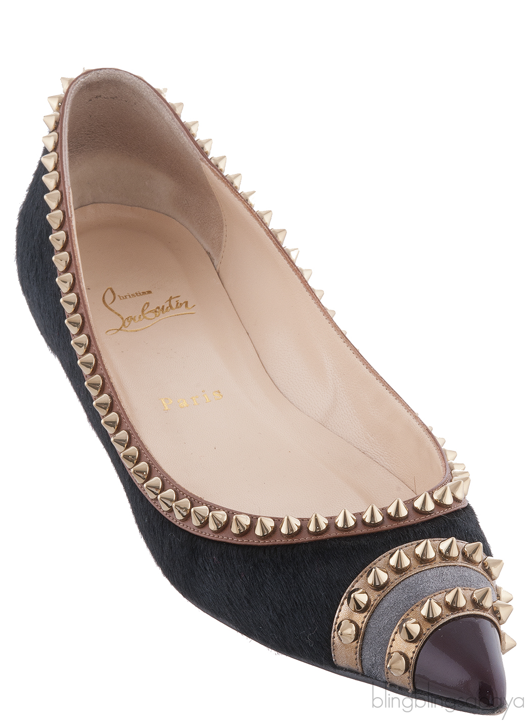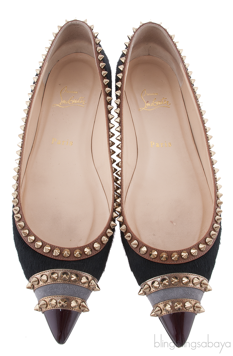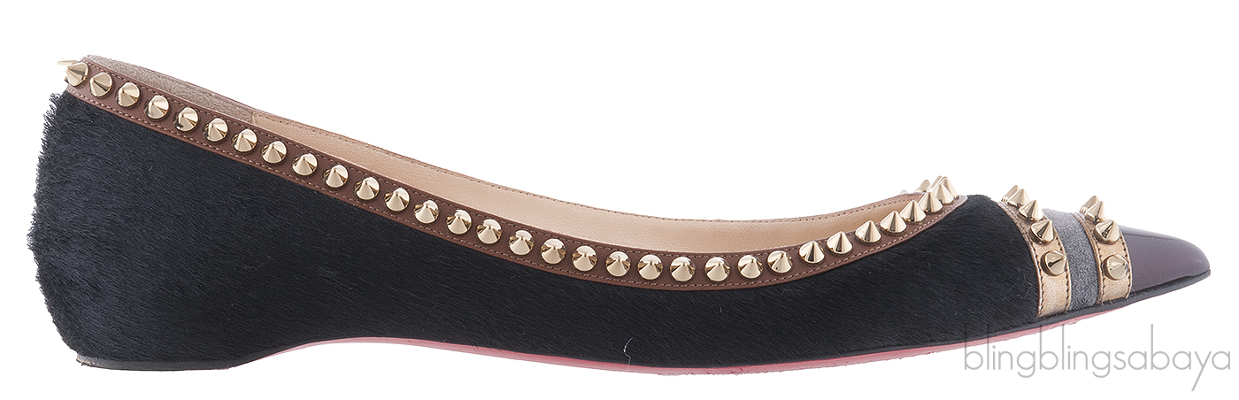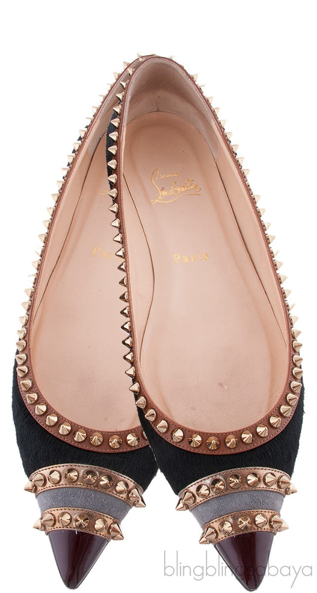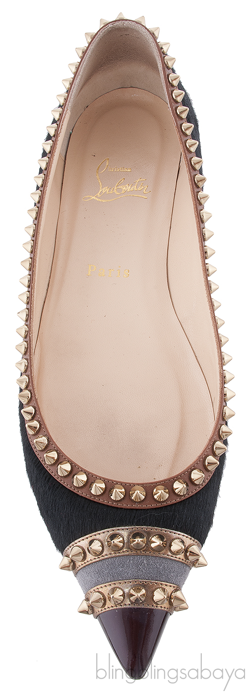 Black Calf Hair Spiked Pointed Toe Flats from Christian Loubountin!