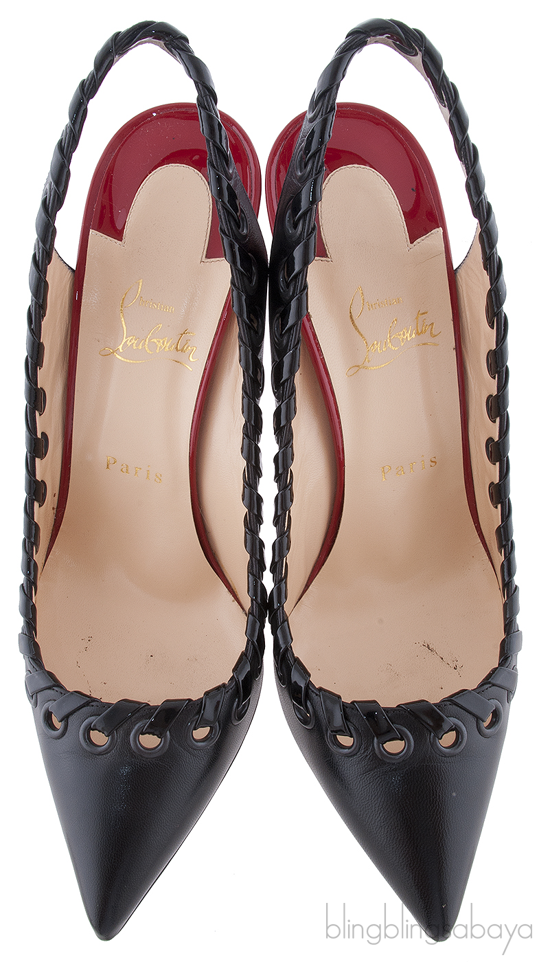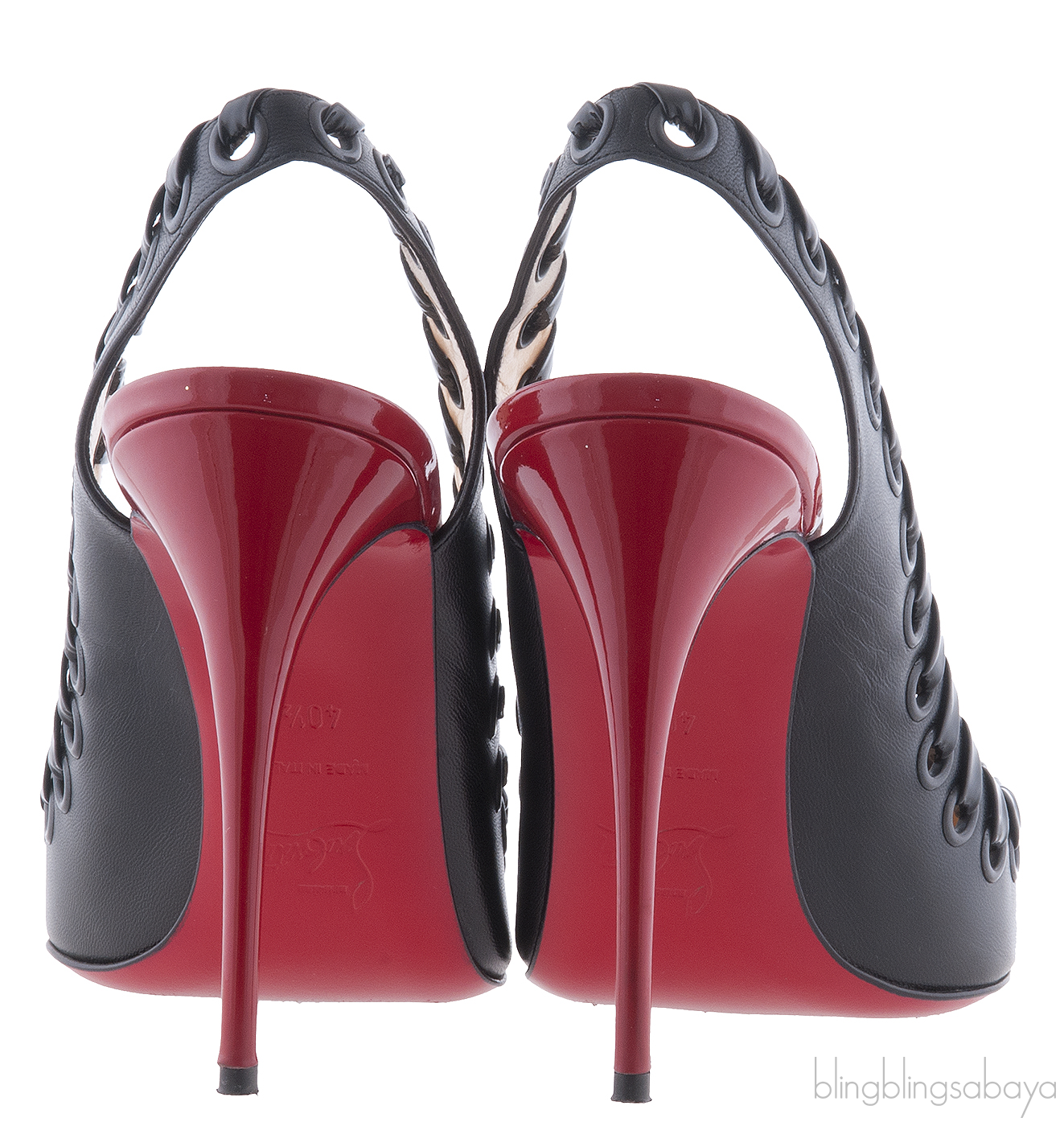 Black leather Ostri Sling 100 Heels from Christian Loubountin!