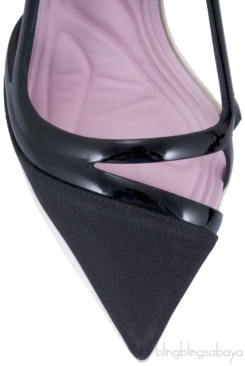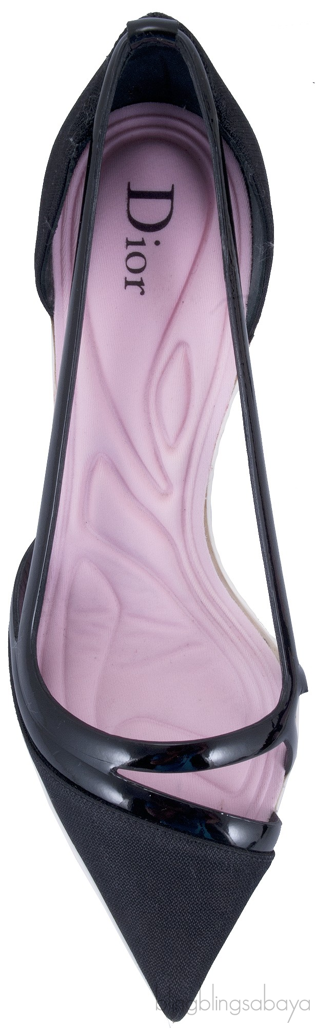This Black Satin Cut-out Pump from Christian Dior is crafted in outstanding cut-out design in black satin fabric with black patent leather trimming and leather lining. This features a pointed toe with cut-out upper design, pink padded insole, white rubber sole and curved heels measuring 100 mm high.