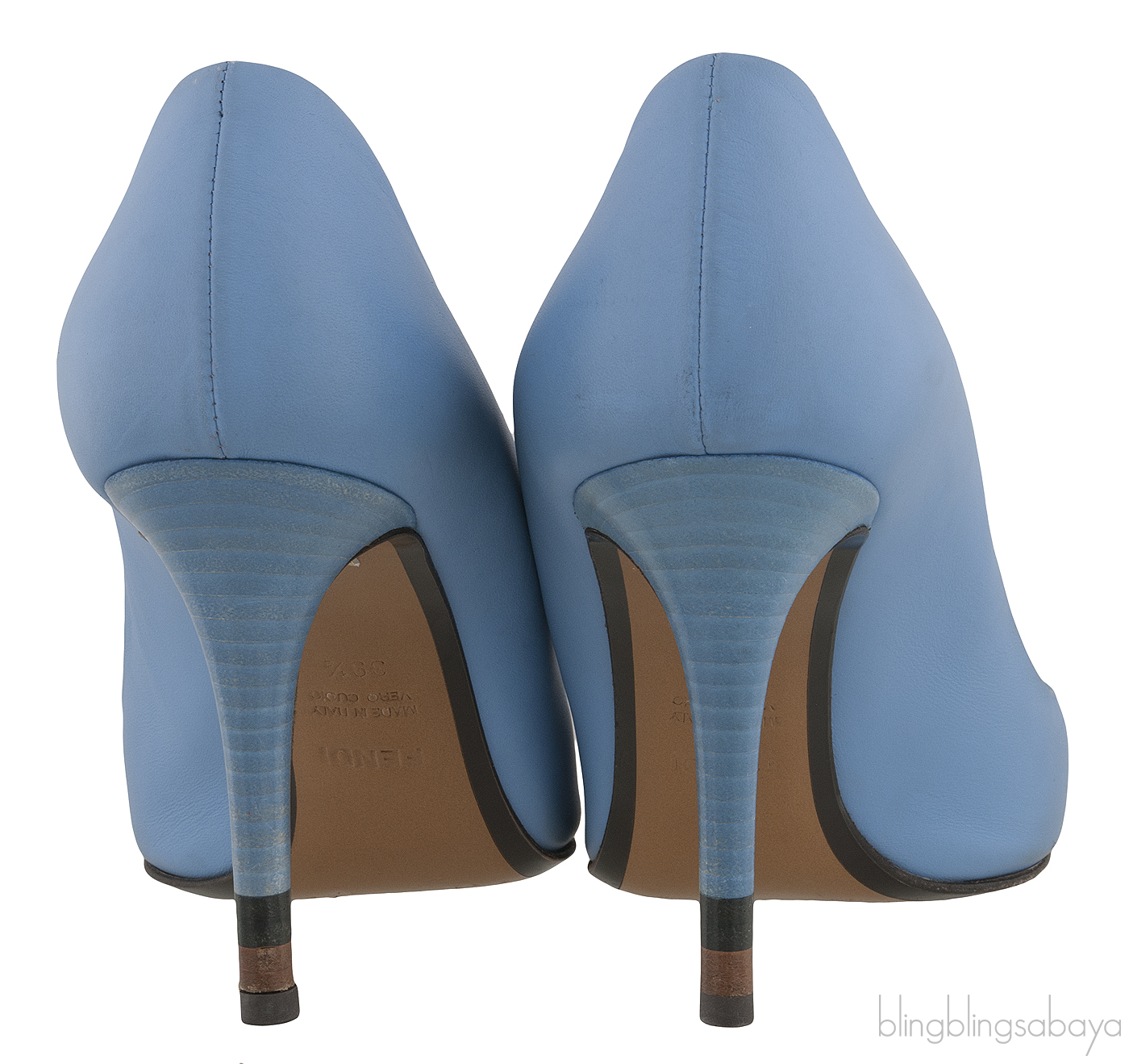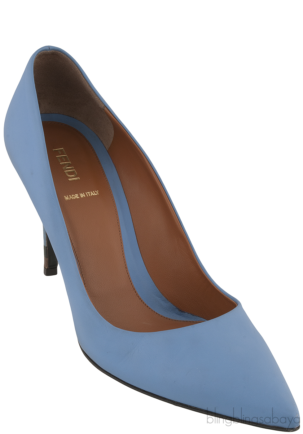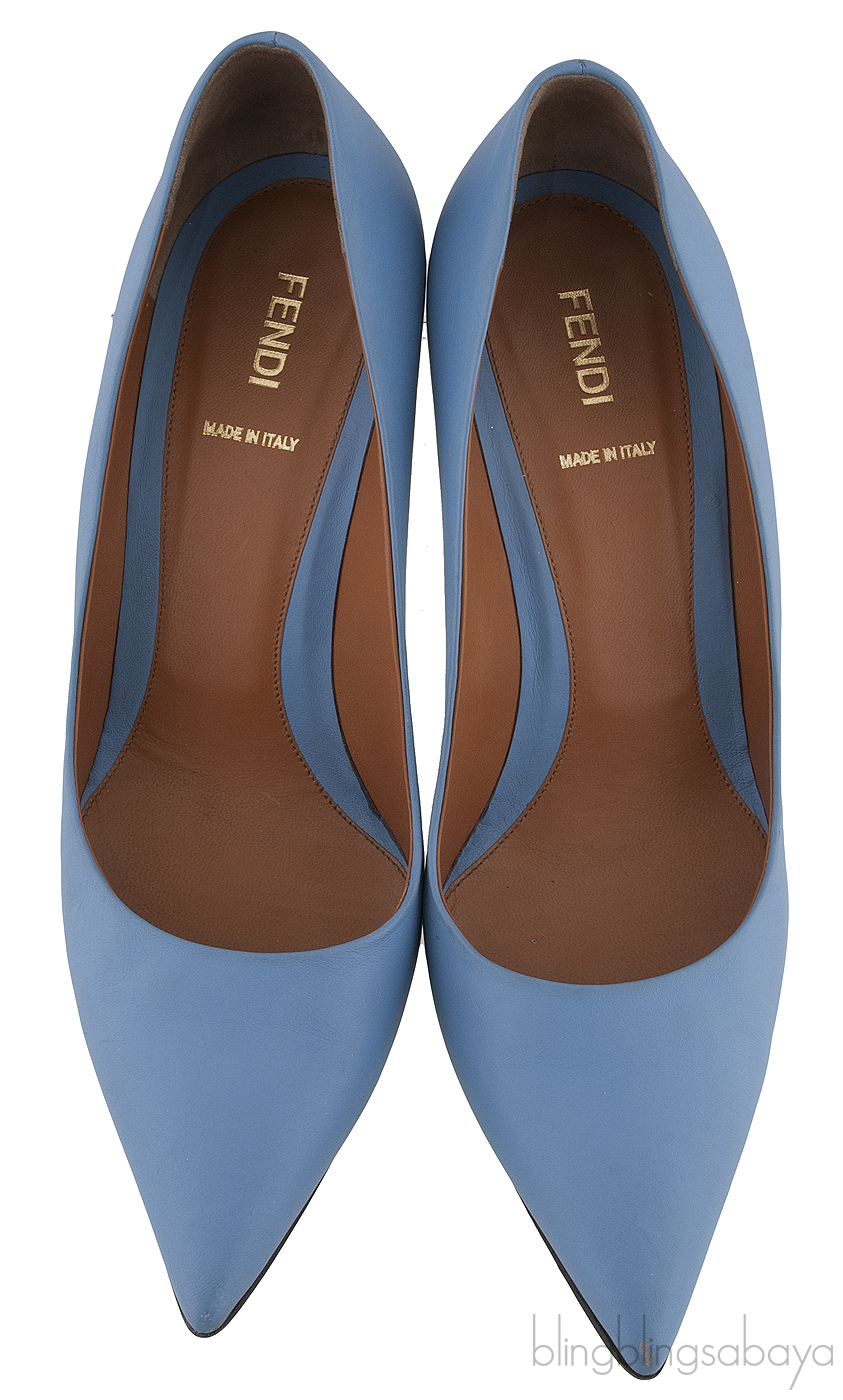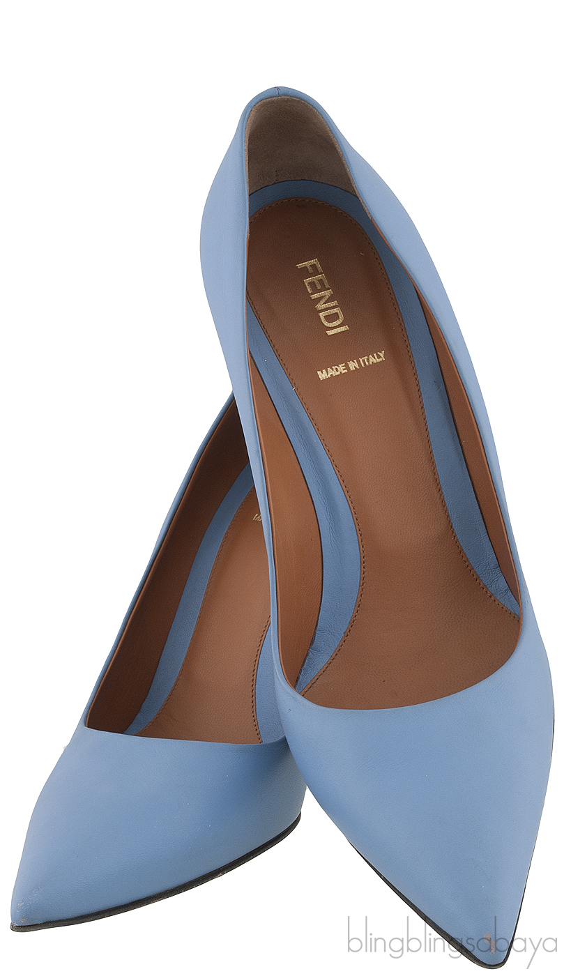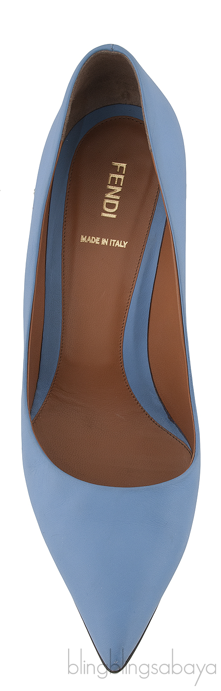 These Blue Grey Pointed Heels from Fendi are made of Blue Grey leather with matte finishing. These shoes features a brown leather lining and insole, pointed toe, heels measuring 90 mm high and leather sole.