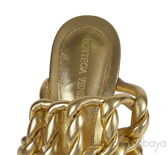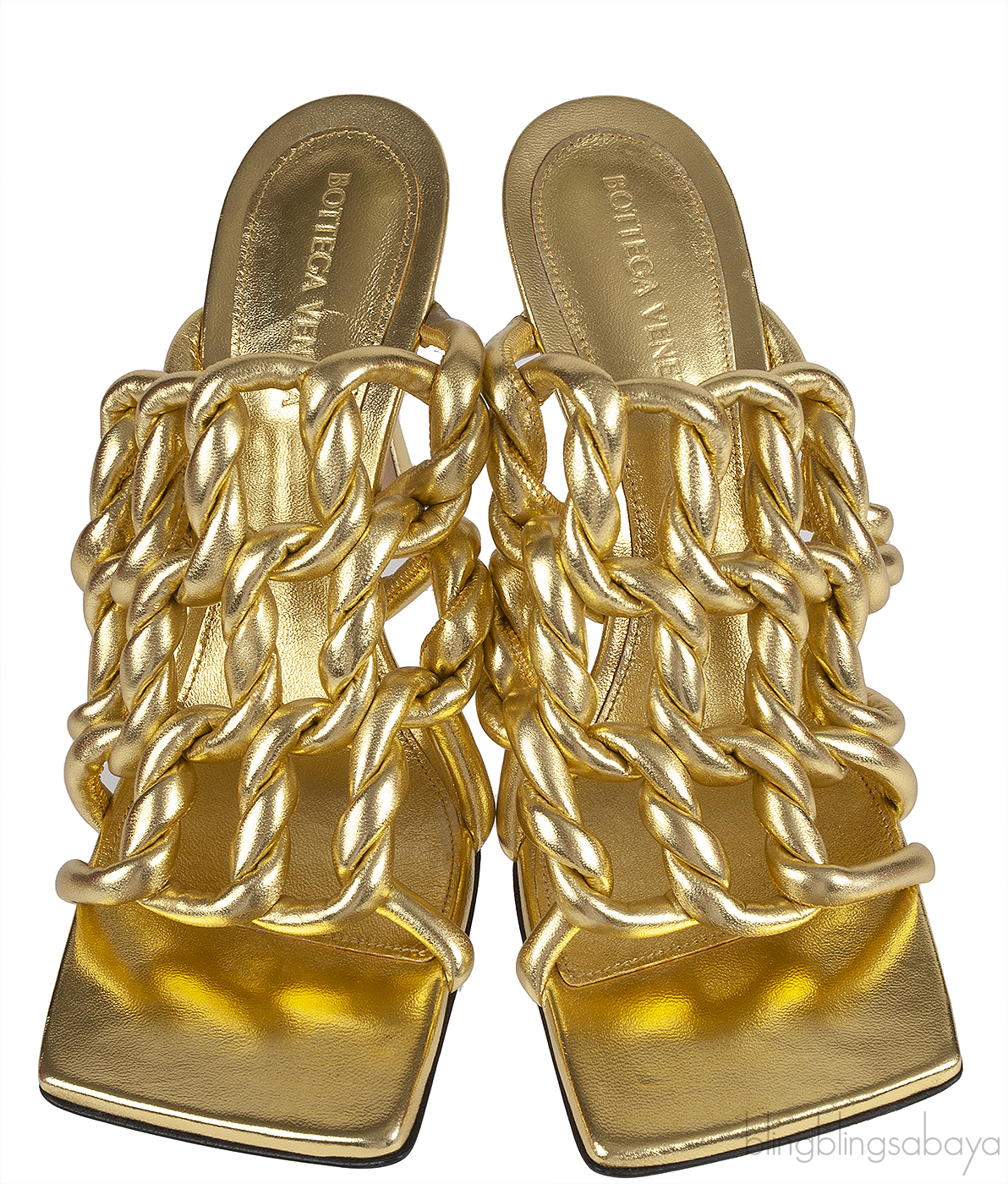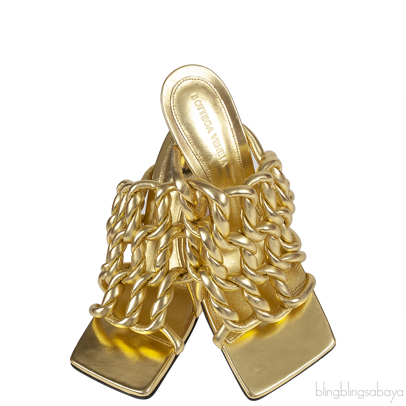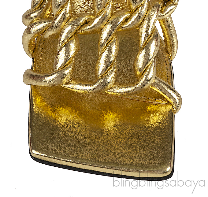 Bottega Veneta Metallic Gold Reflection Weave Square Toe Sandals