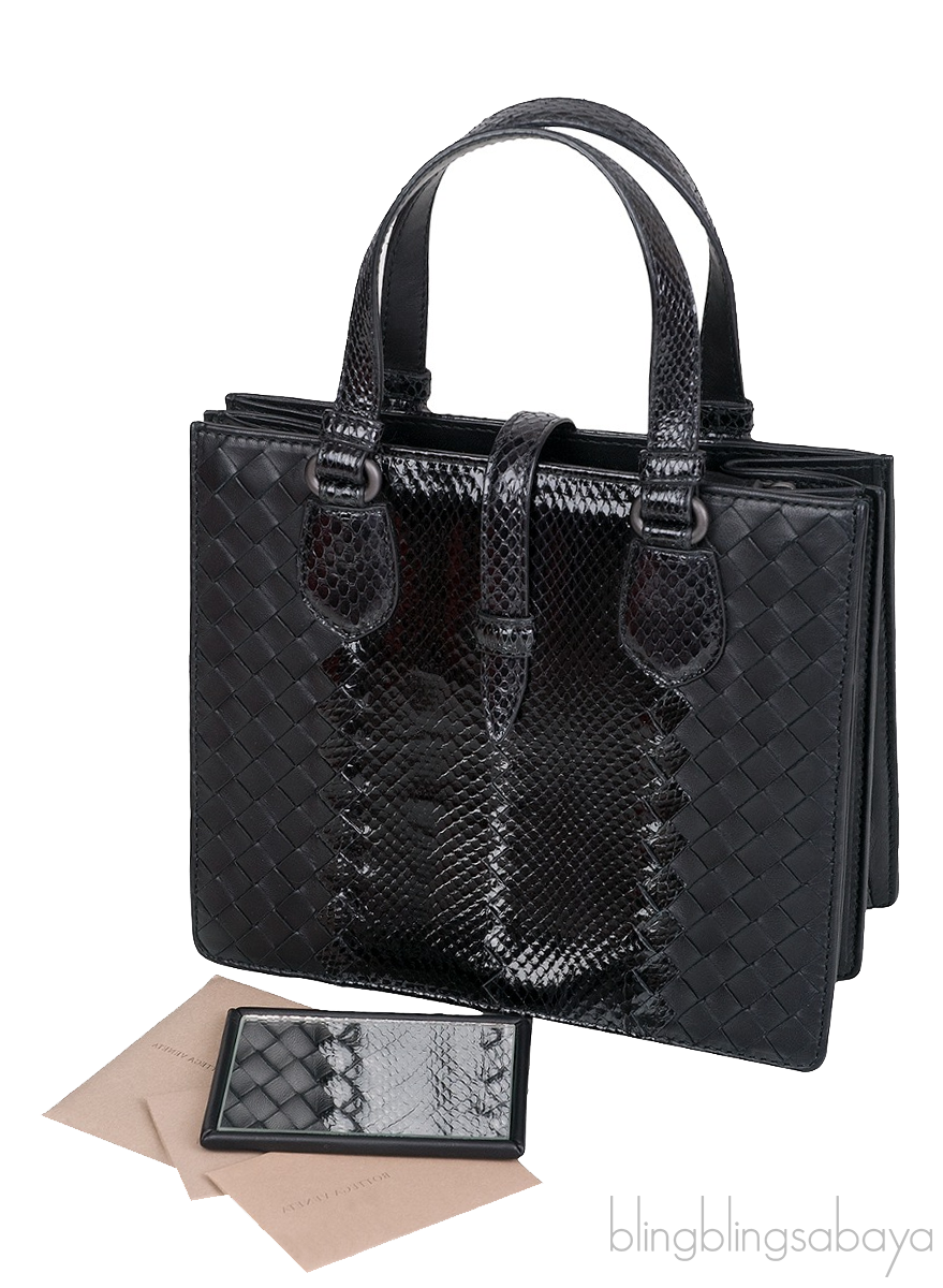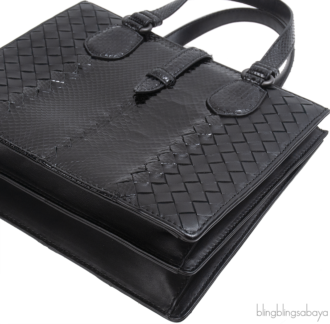 Bottega Veneta Black Intrecciato Leather & Python Handbag