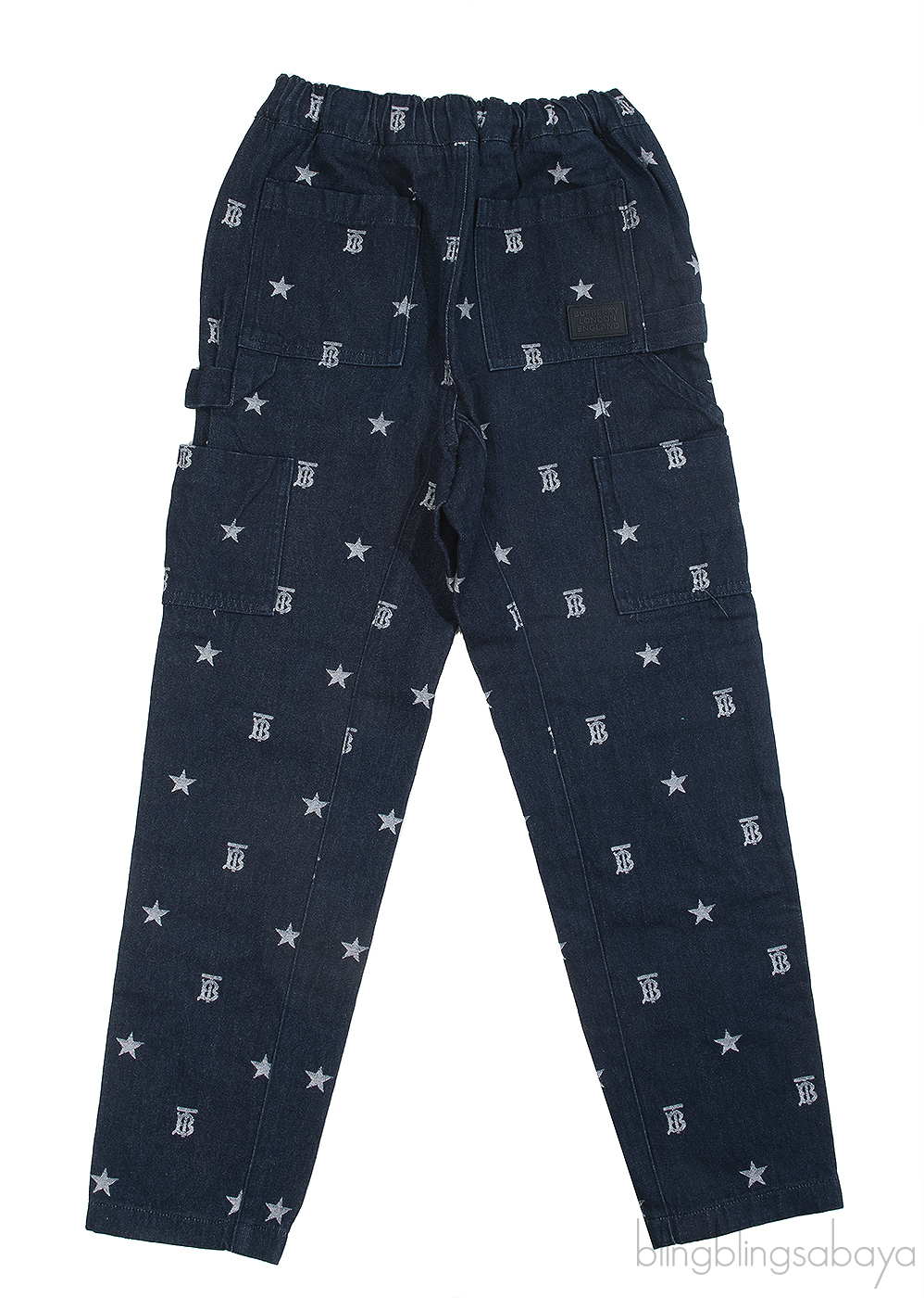 This Burberry Blue Printed Kids Denim Jeans is crafted from 100% Cotton in dark blue. This jeans features an elastic waistline with drawstring fastening and multiple pockets.