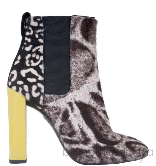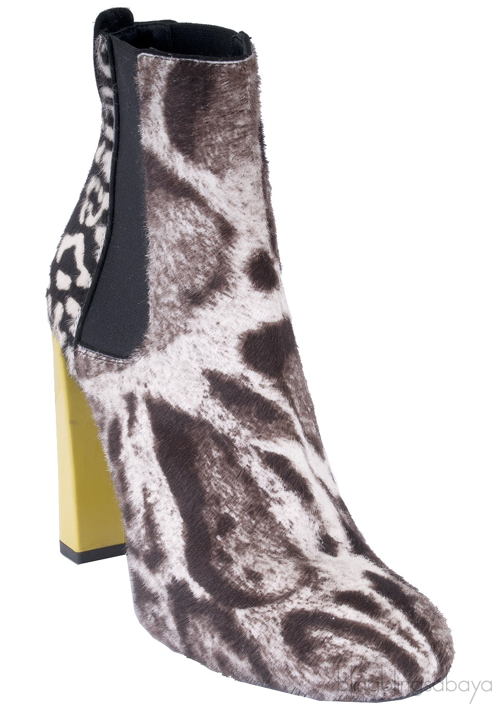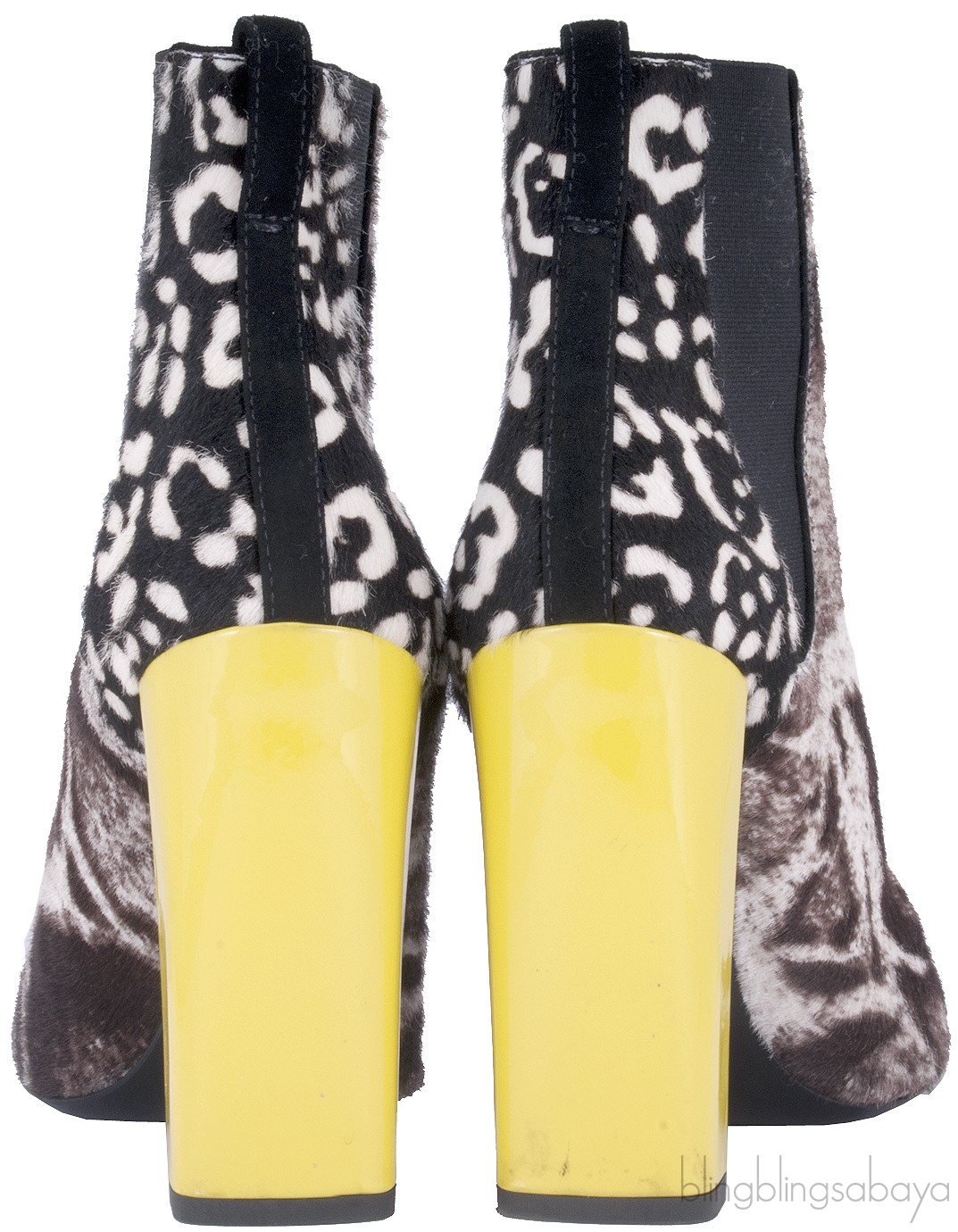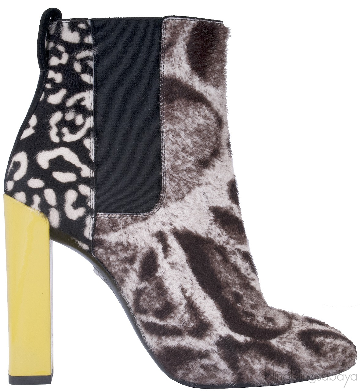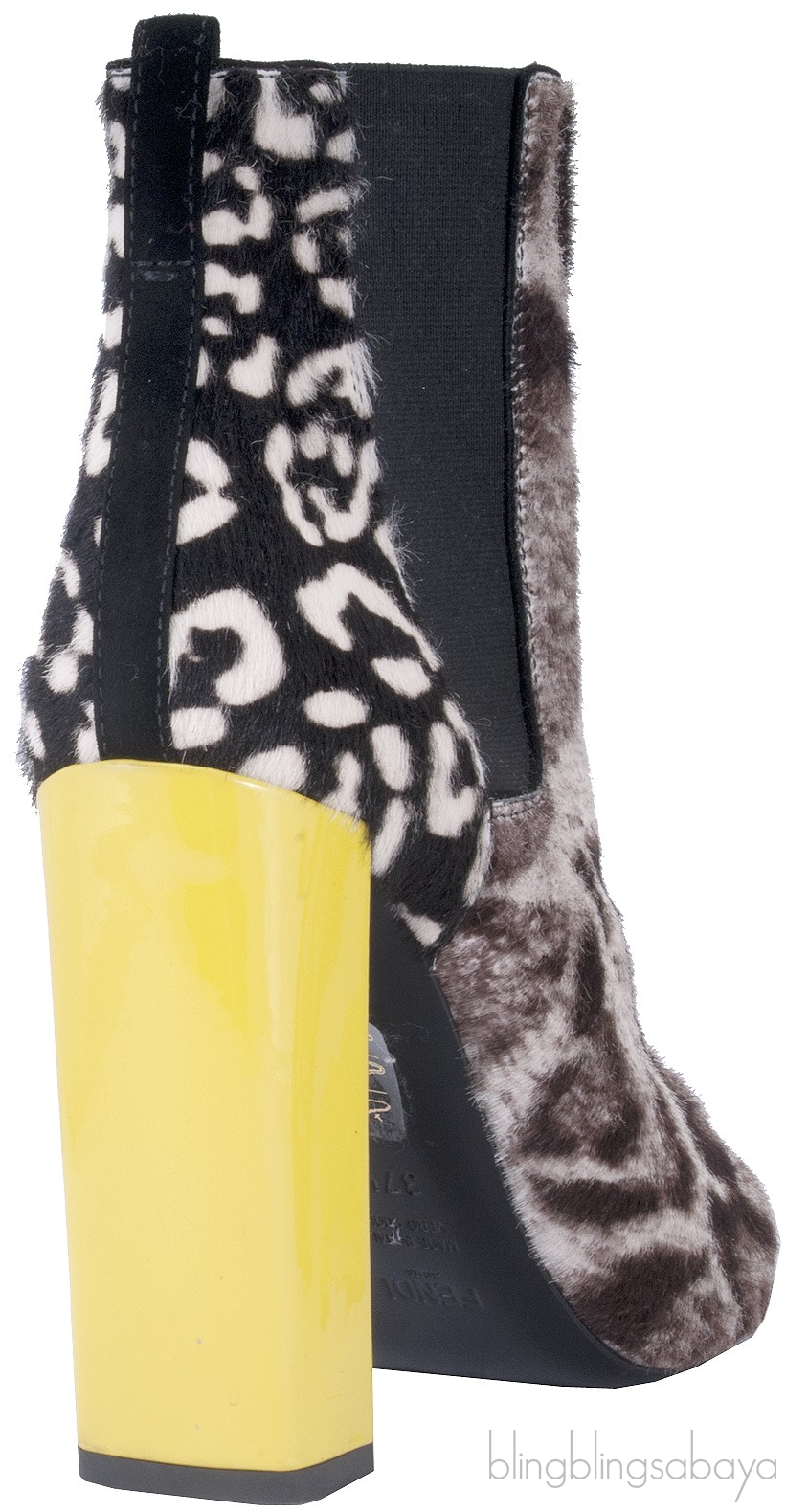 This Mid-Calf Eloise Boots from Fendi is crafted in calf leather featuring a brown and white calf leather at front, black and white leather at back, elasticised side panels, round toe and yellow high block heels measuring 110 mm.