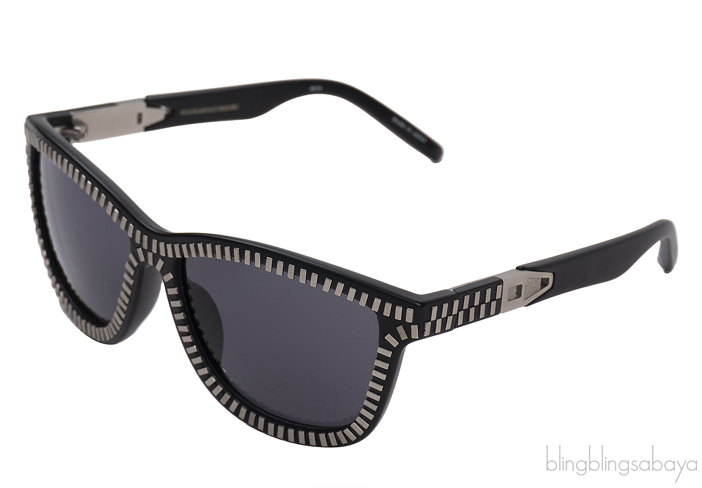 This CE Cat 3 Zipper Motif Sunglasses from Alexander Wang in collaboration with Linda Farrow is made of black acetate frame with zipper motif silver aluminum detailing, zipper motif, square frames, straight arms with angled tips and silver-tone hardware with tinted lenses.