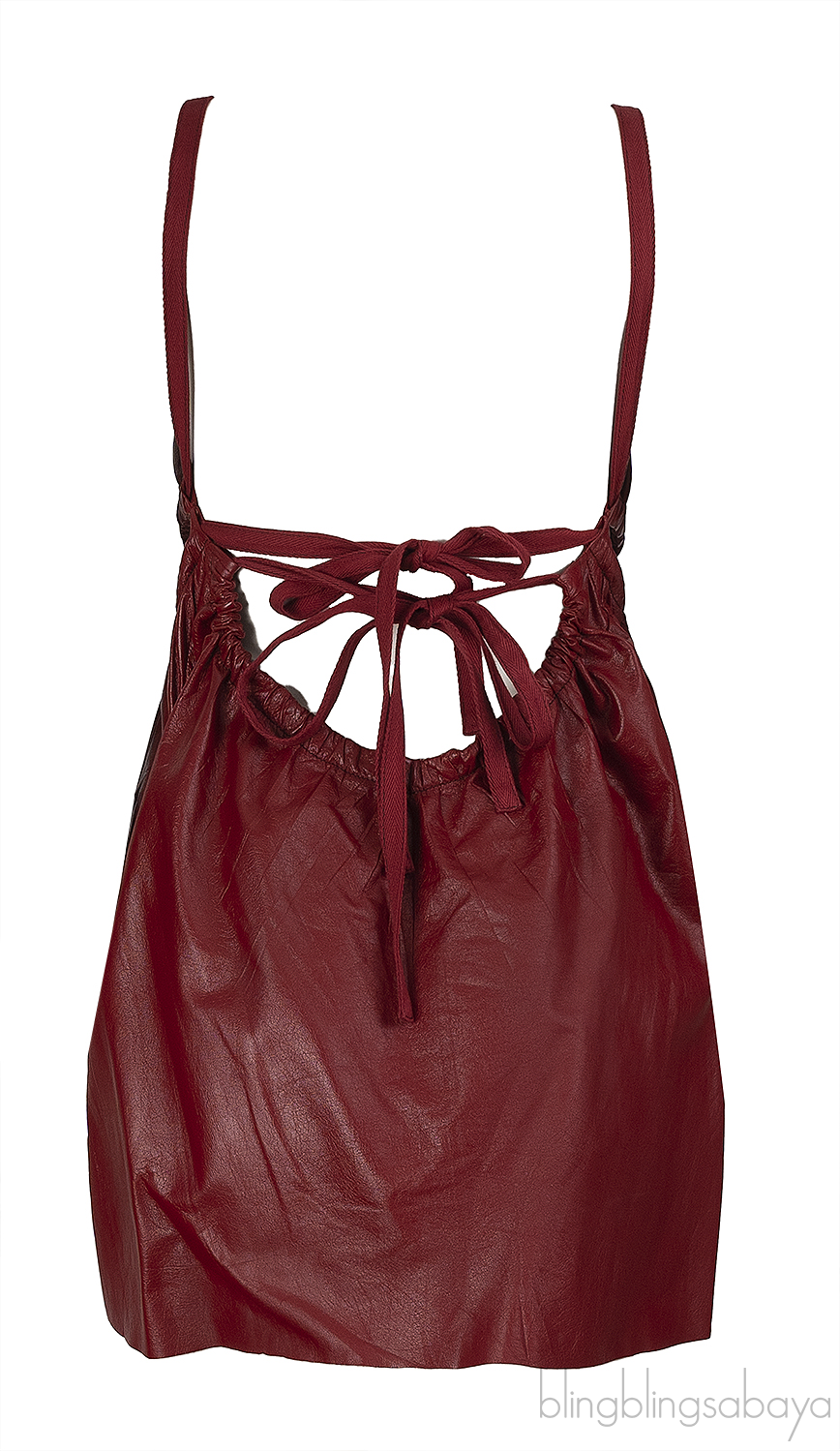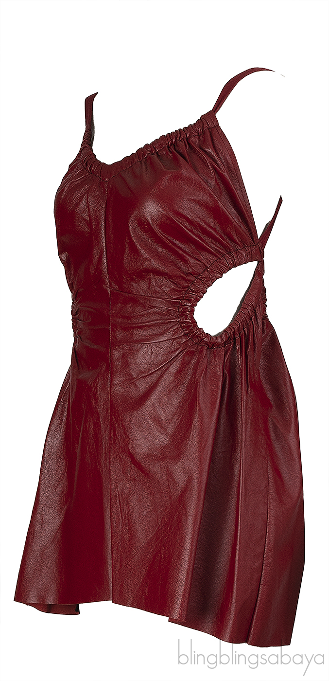 This Celine Burgundy Leather Cut-out Midi Dress is crafted from 100% lamb skin leather. This dress features a v-neckline, open back with ribbon fastening, cut-out on the side and mini length.