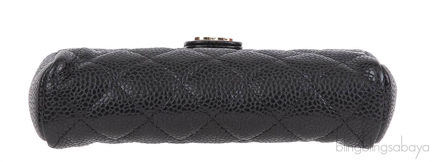 This Black Quilted Small Phone Holder from Chanel is crafted in elegant black quilted caviar leather accented with palladium hardware. This cute notable piece features a snap magnetic closure at front with small CC logo. Interior features two major compartments divided with a zip compartment at the mid-center.