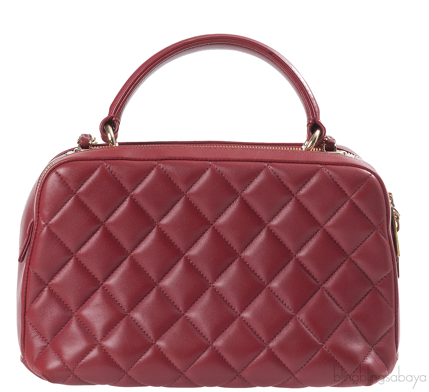 This Burgundy Quilted Top Handle Bag from Chanel is crafted in smooth quilted leather accented with the gold hardware.