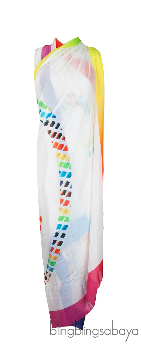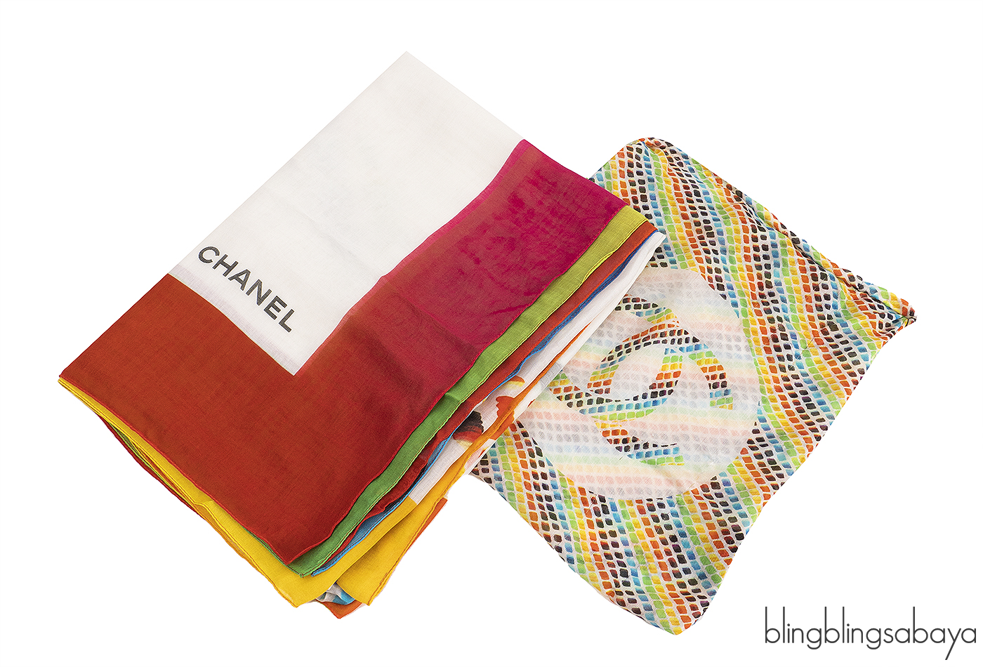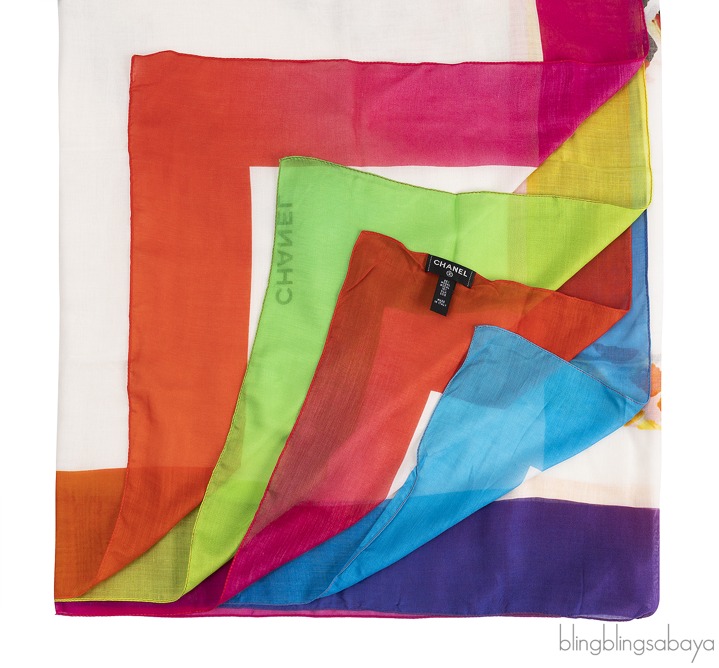 Crafted from a luxurious blend of 85% modal and 15% silk, this piece offers an ultra-soft, lightweight feel with a graceful drape. It features a vibrant multi-color trim that beautifully frames the design, while the oversized CC logo at the center adds a bold yet sophisticated signature touch.