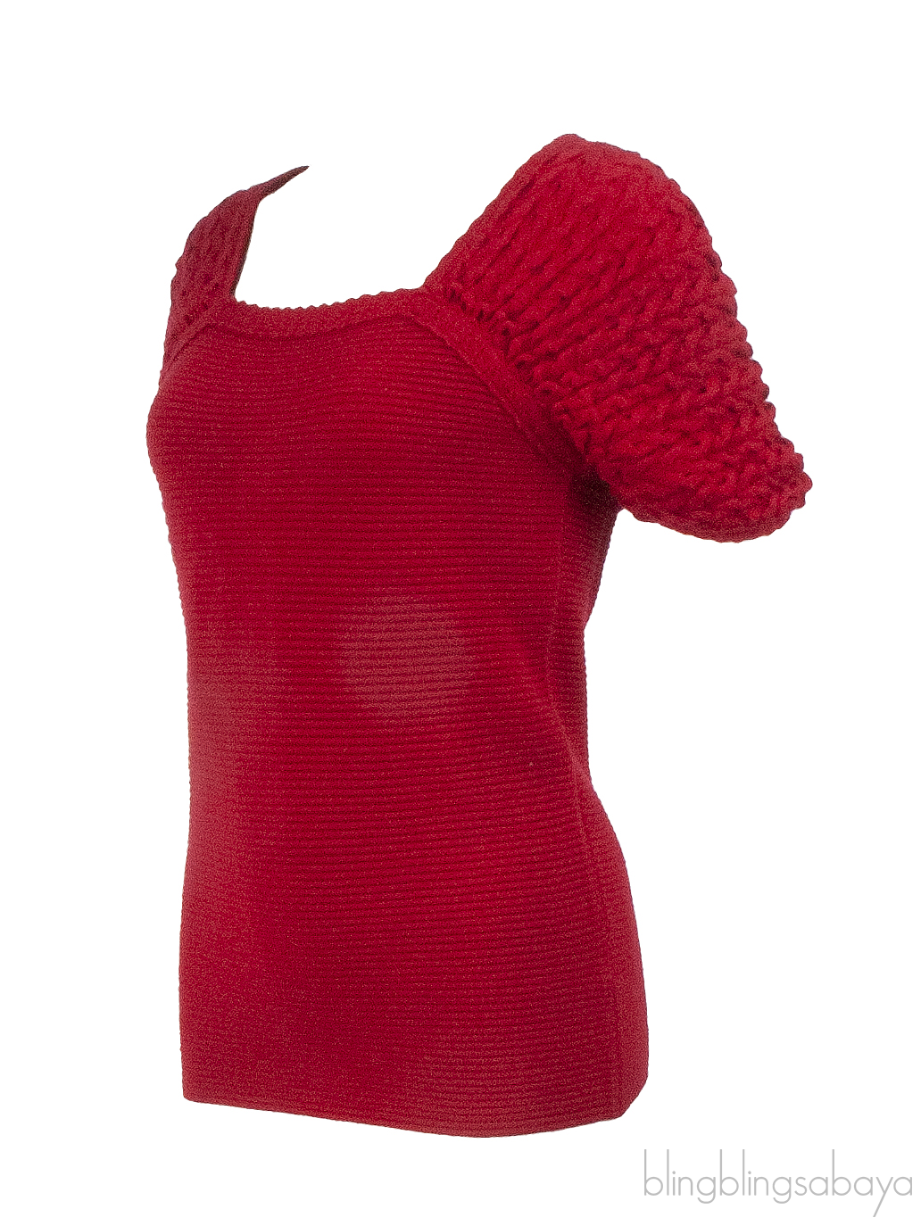This vintage Chanel top is made from 100% wool in a rich red shade. It features a square neckline, short sleeves, a pull-over design, and elegant gold button accents at the back.