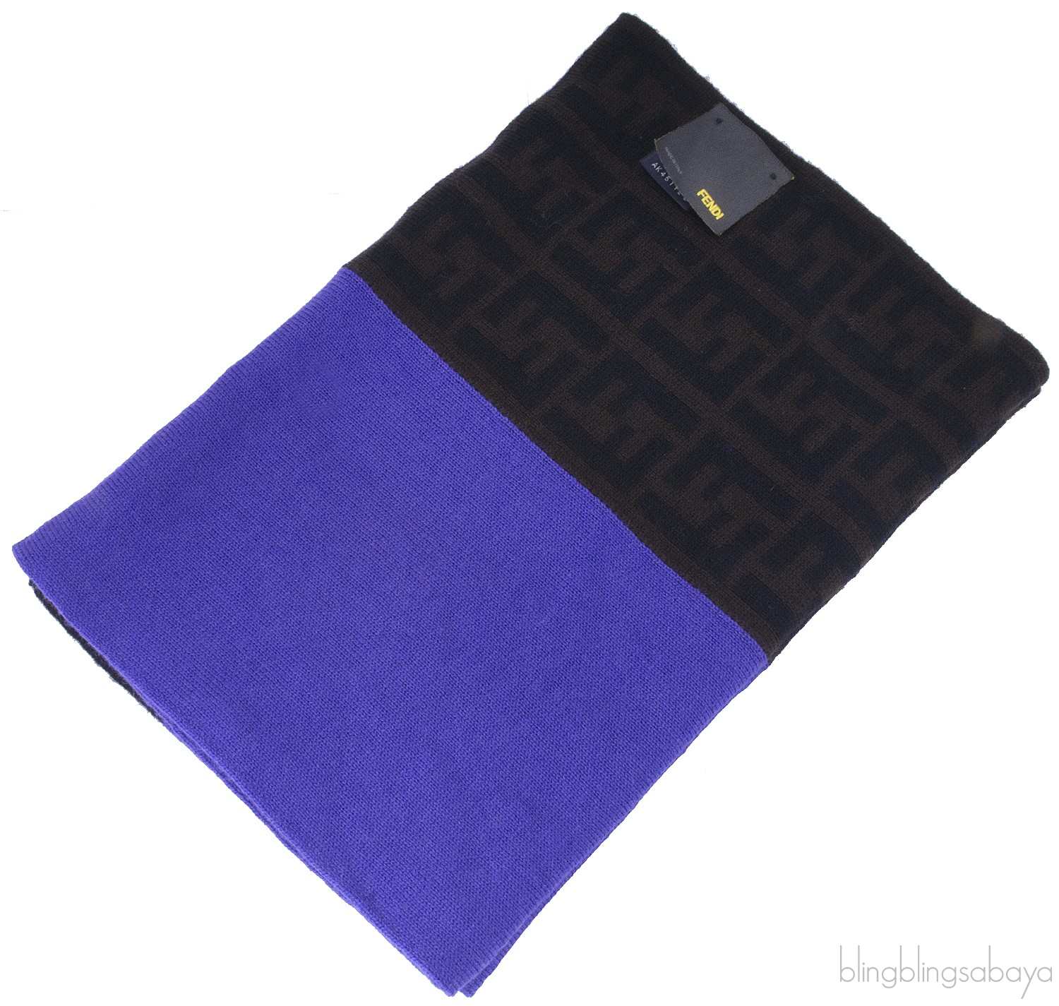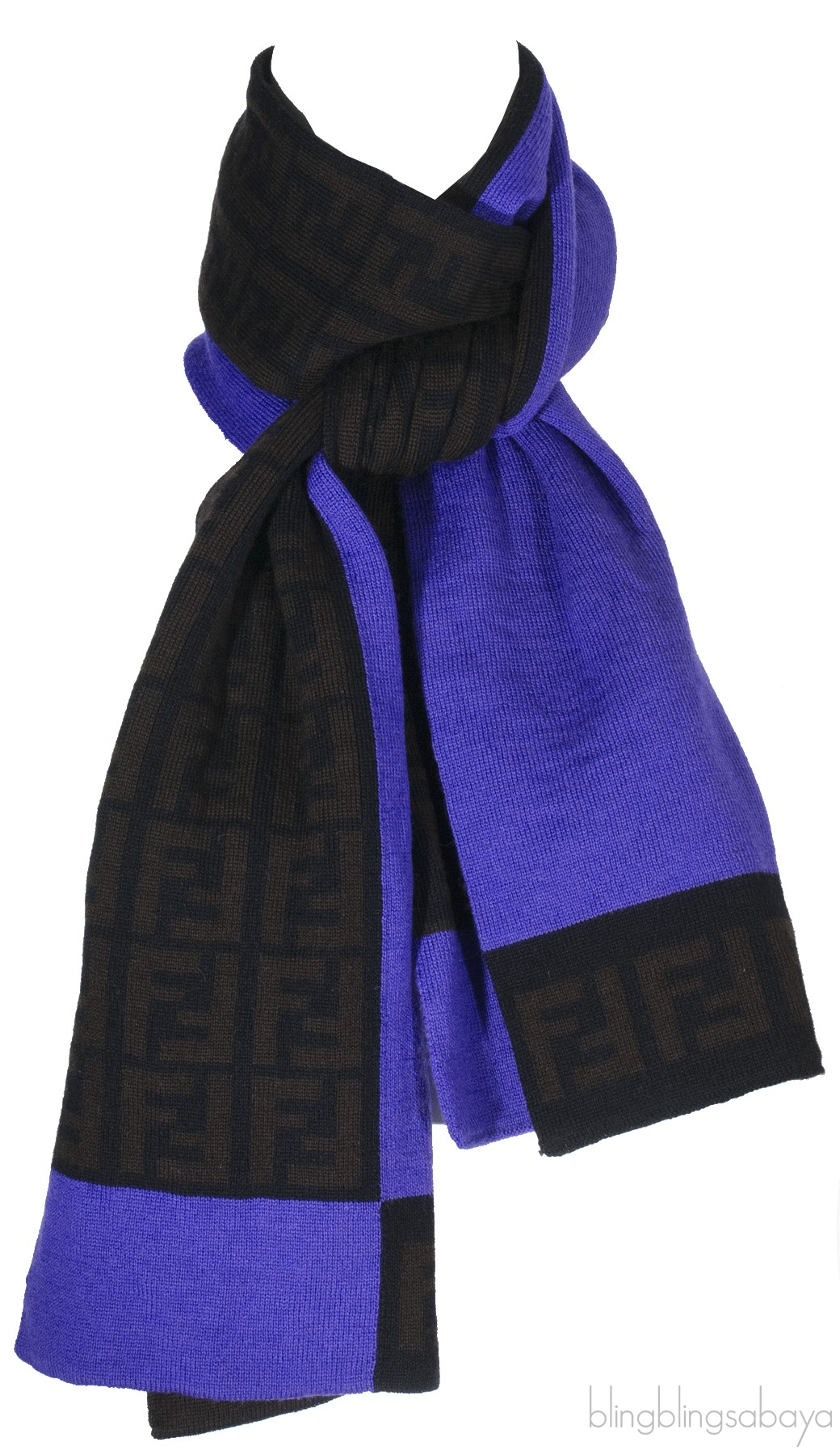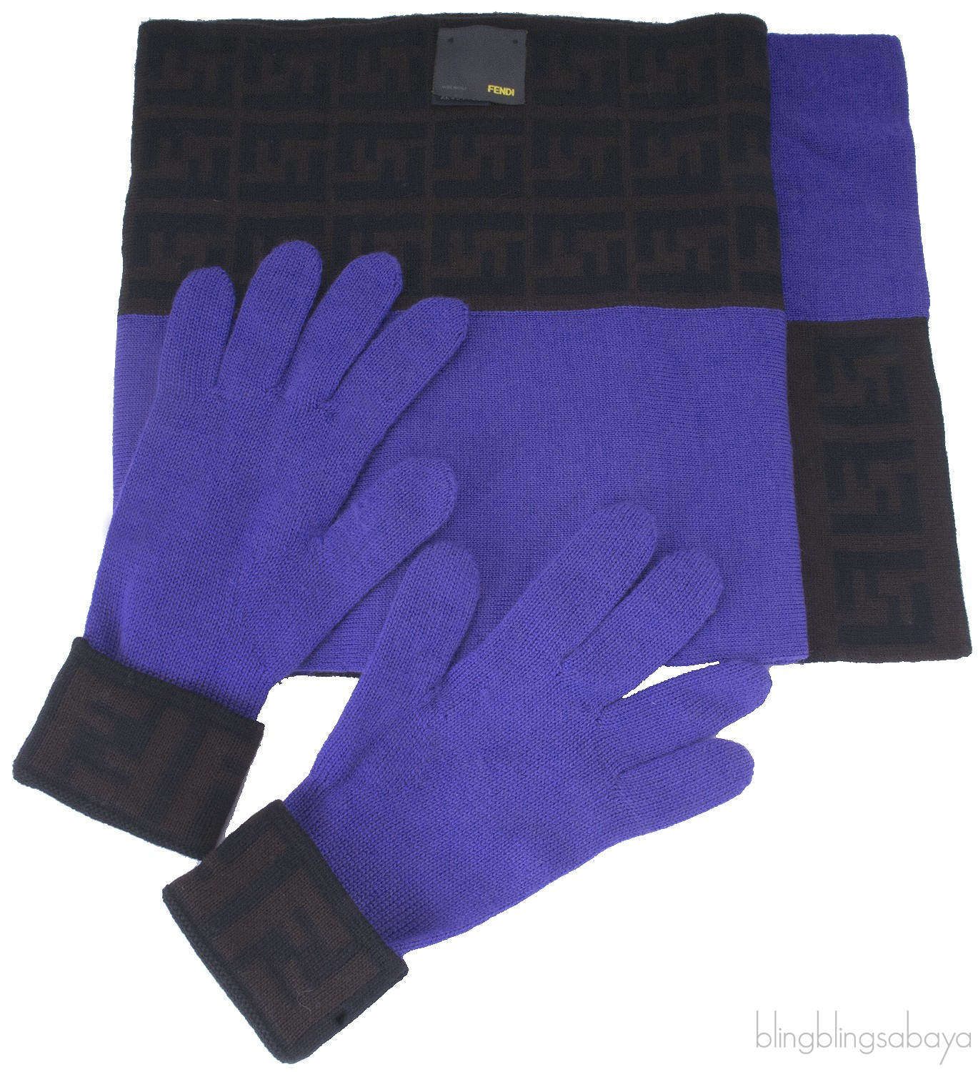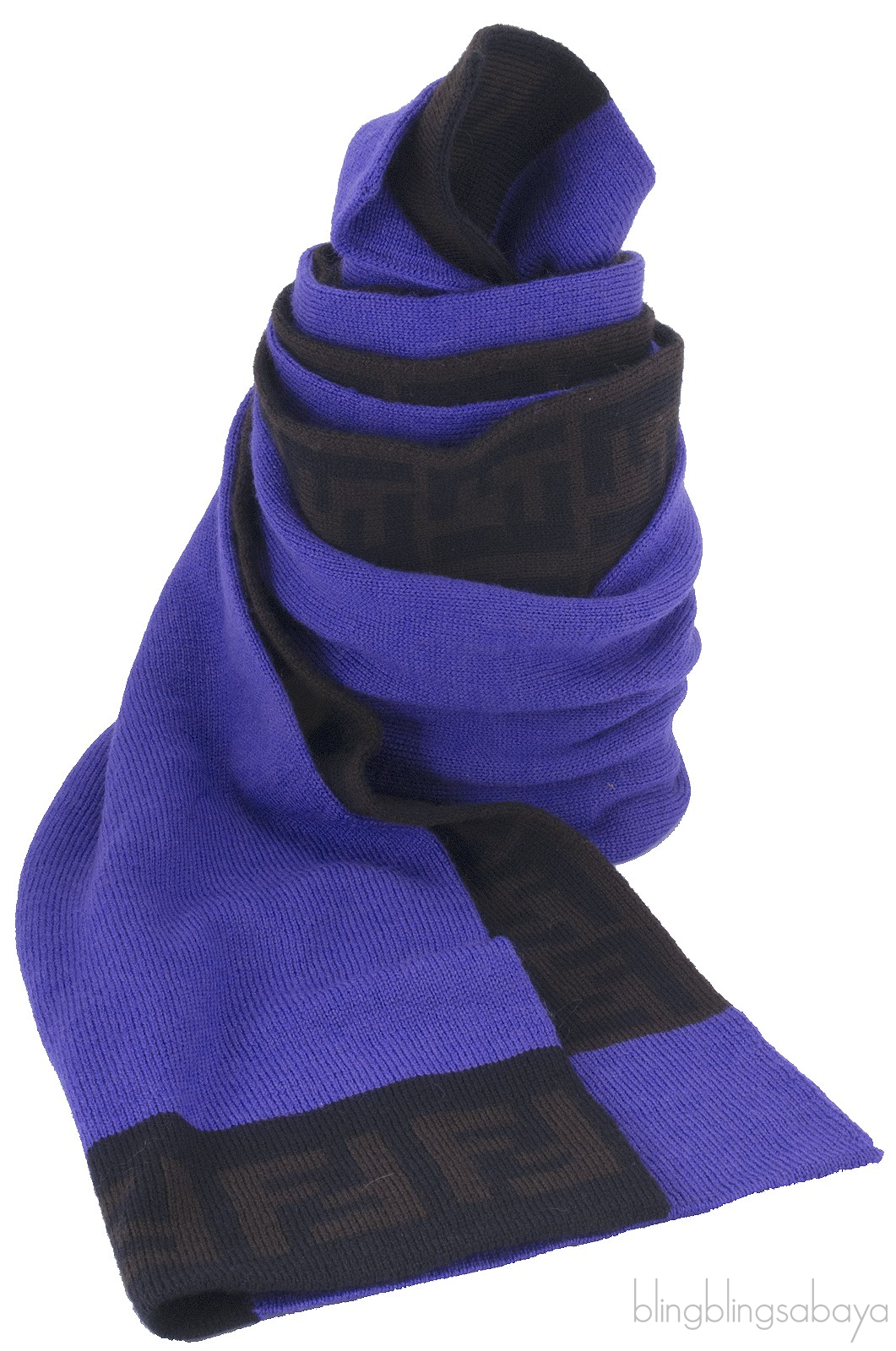 This FF Wool Long Scarf & Gloves are crafted in 100% Wool fabric featuring a color blocking scarf and gloves in blue purple and brown with black logo FF printing.
