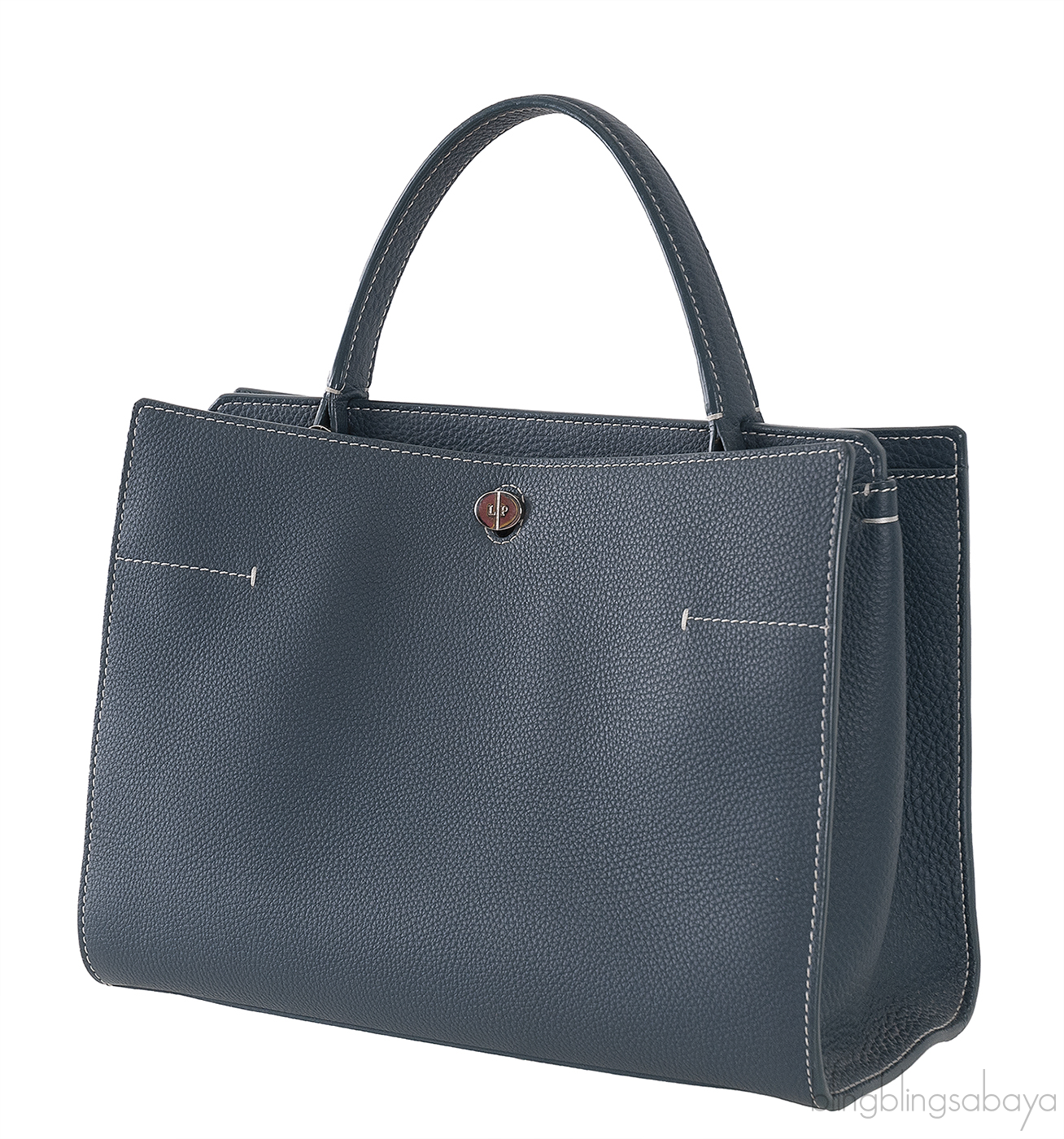This Forest Green Leather Handbag from Loro Piana is crafted in grainy leather in forest green hue accented with palladium hardware. This bag features a single top leather handle, open top with two major compartment inside, zip pocket and 2 patch pockets.