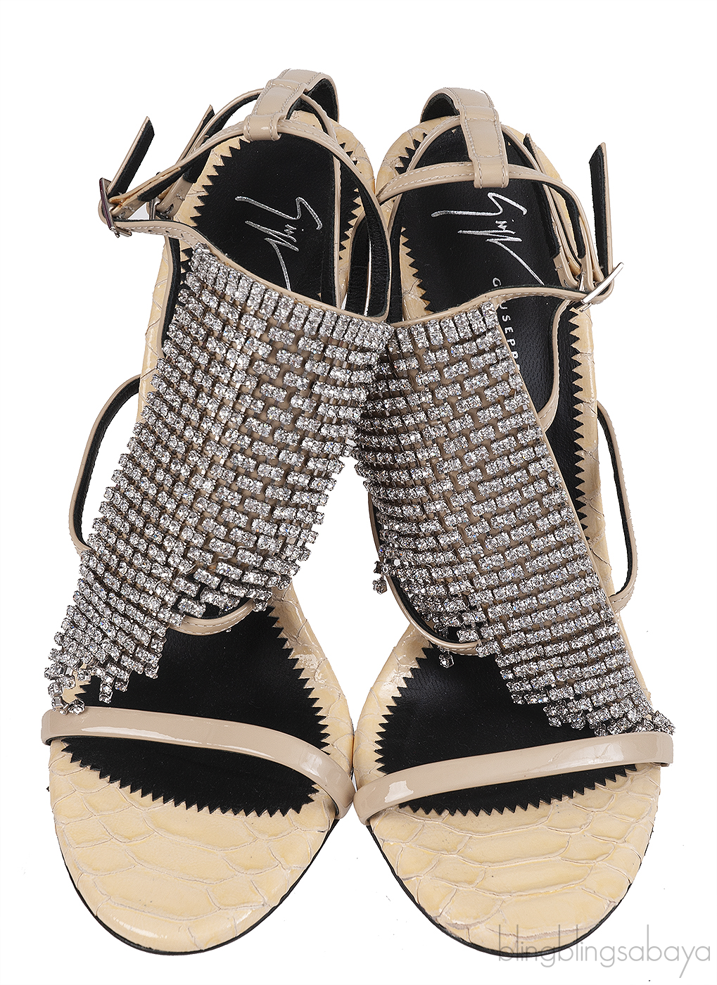 Python Embossed Beige Crystal Sandals from Giuseppe Zanotti!