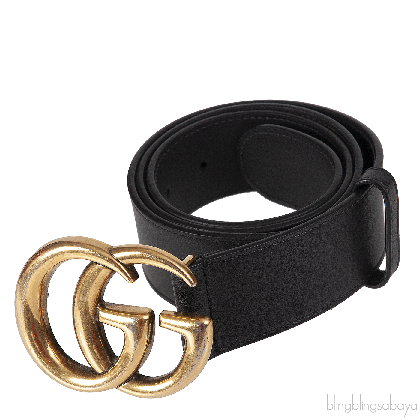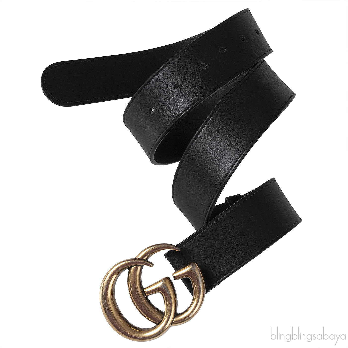 This Gucci Black Double G Buckle Belt is crafted from the black leather featuring a signature GG buckle in aged gold hardware.