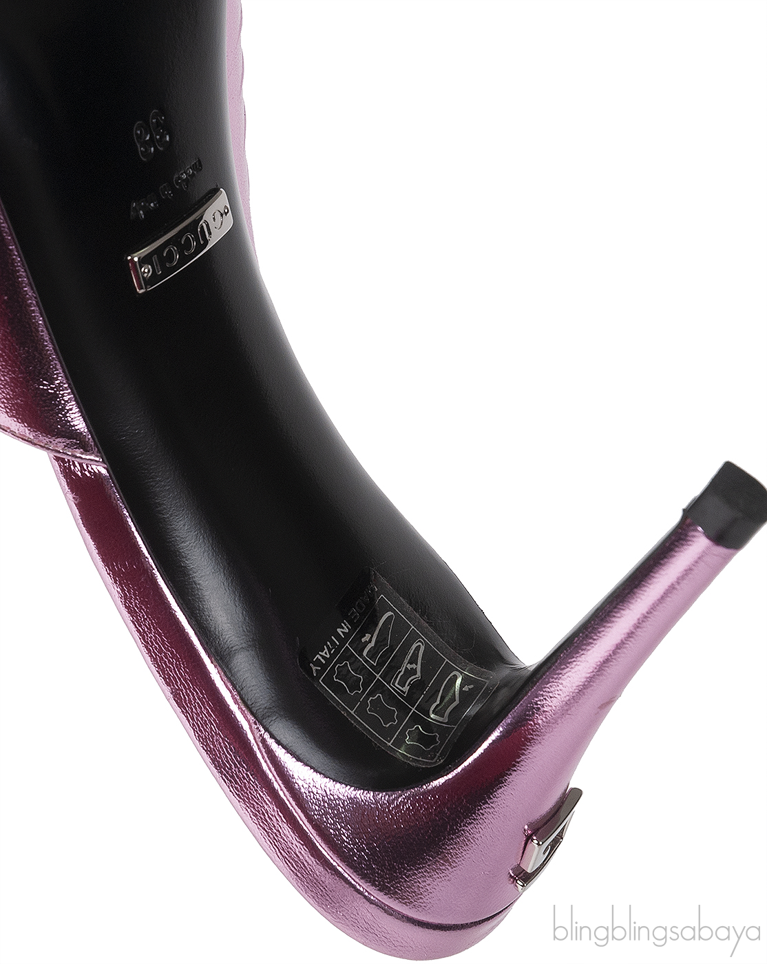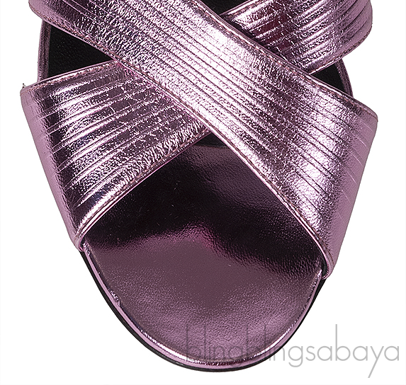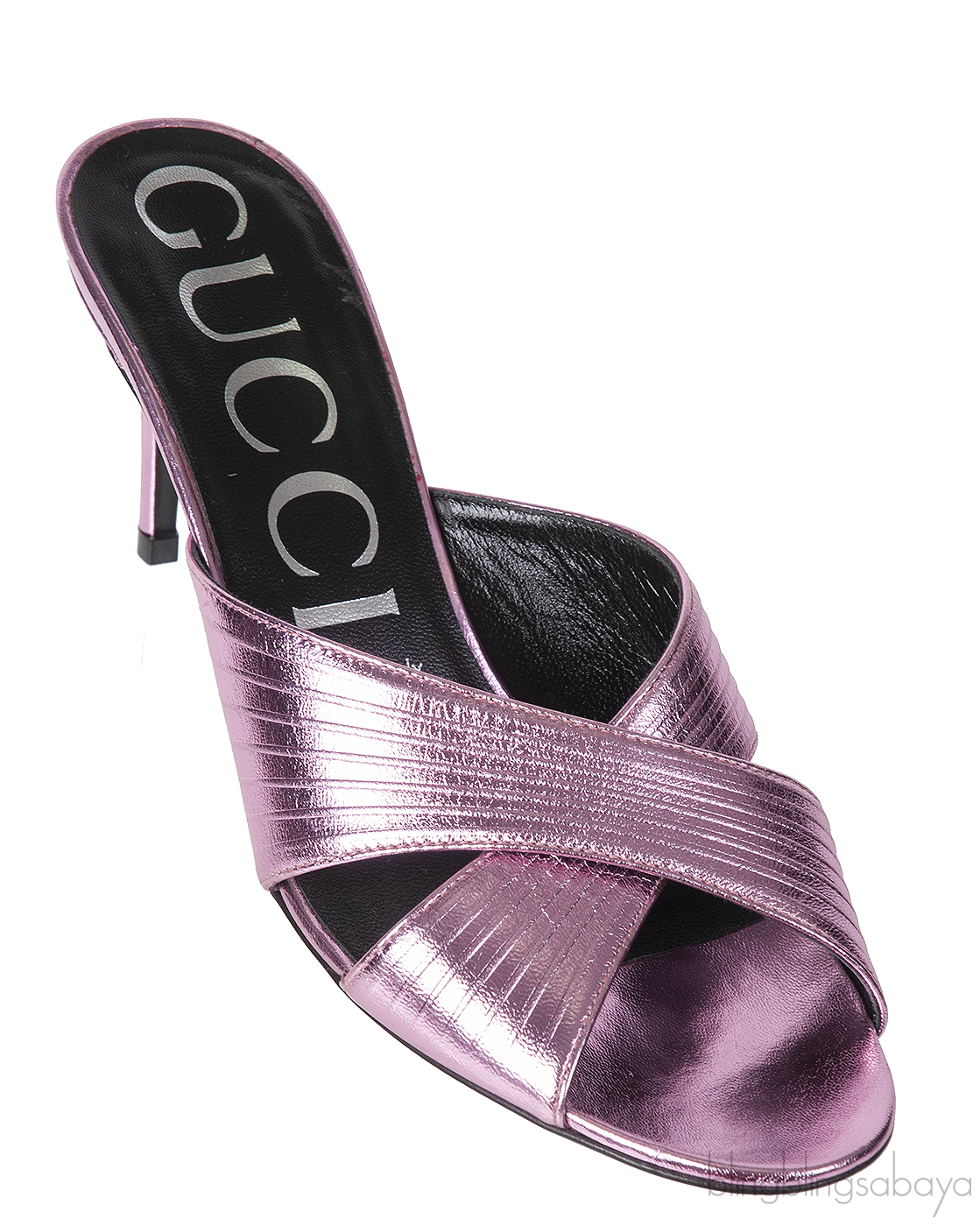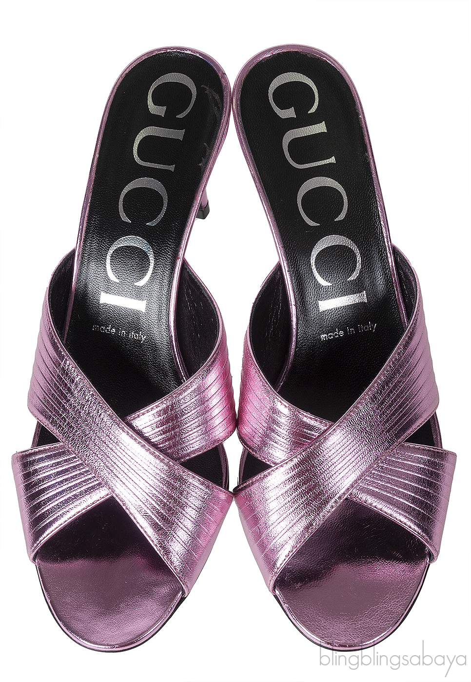 These Criss-cross Metallic Pink Sandals from Gucci are crafted from metallic pink leather upper with black leather lining.