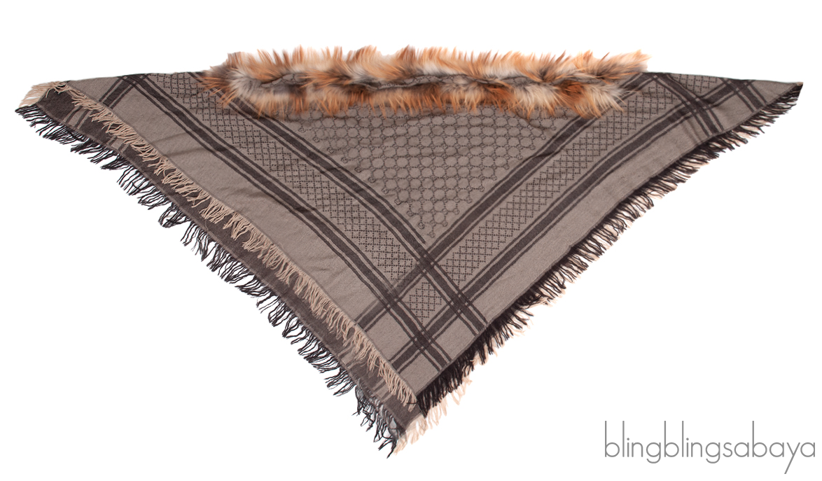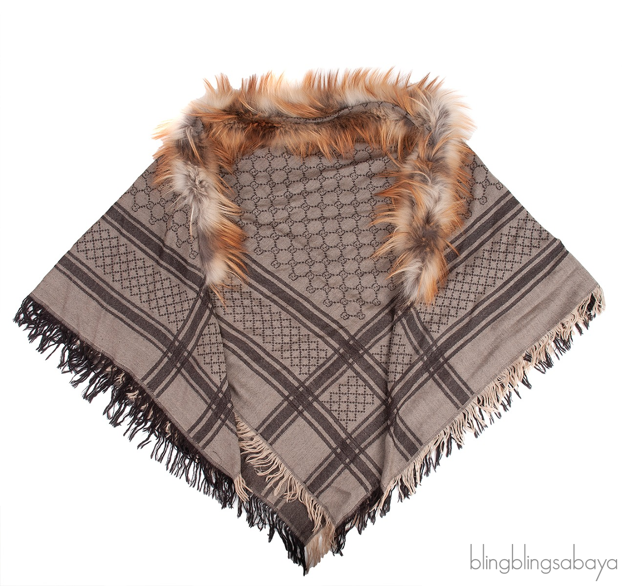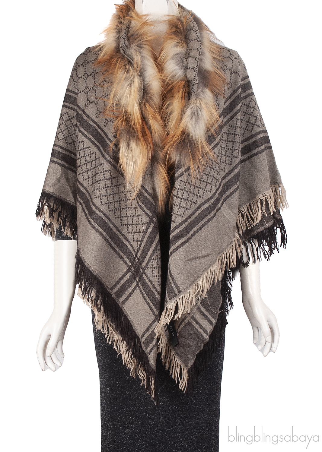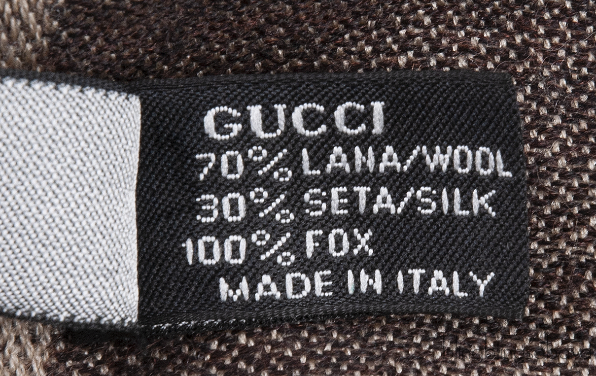 This Fox Trimmed GG Patterned Stole from Gucci is crafted from 70% Wool and 30% Silk Fabric with 100% Fox fur accent. This stole or scarf features a guccissima pattern and stripe print, fox fur detailing and fringed edges.