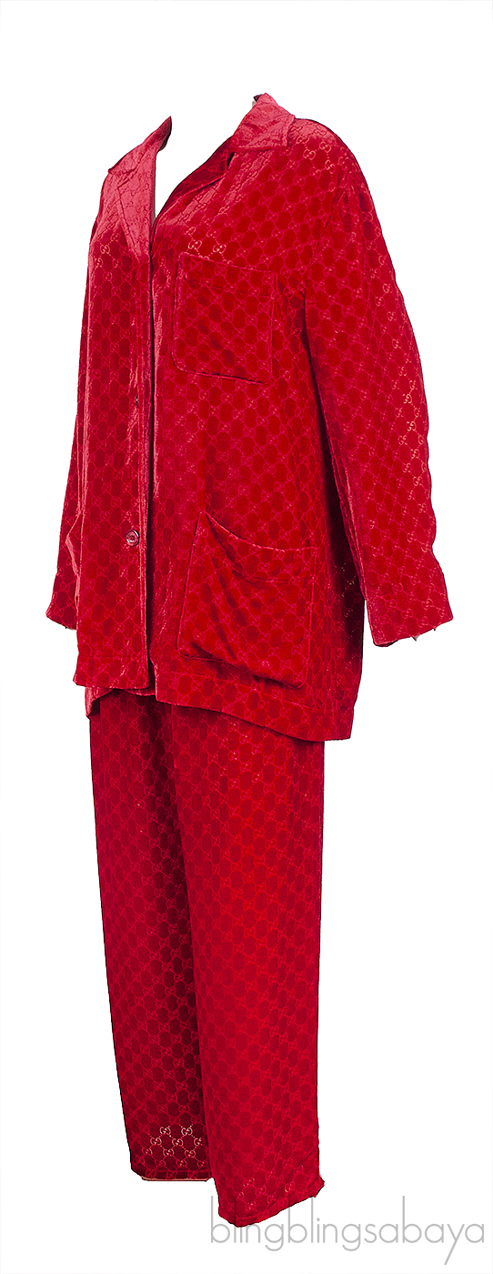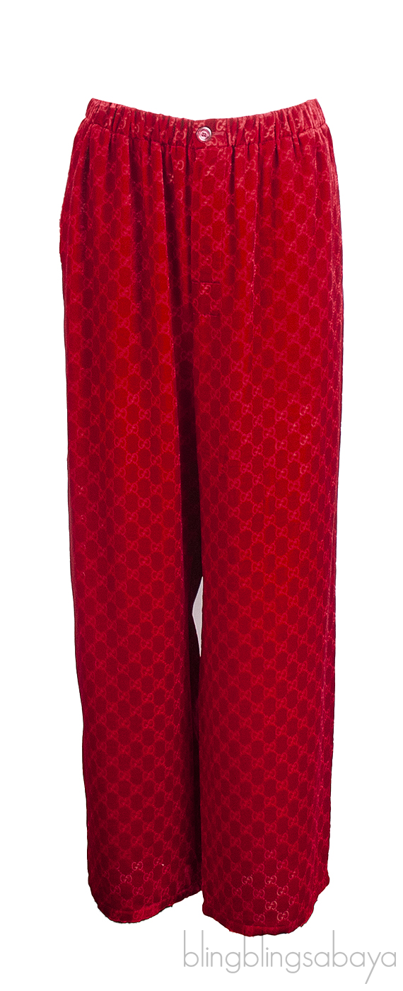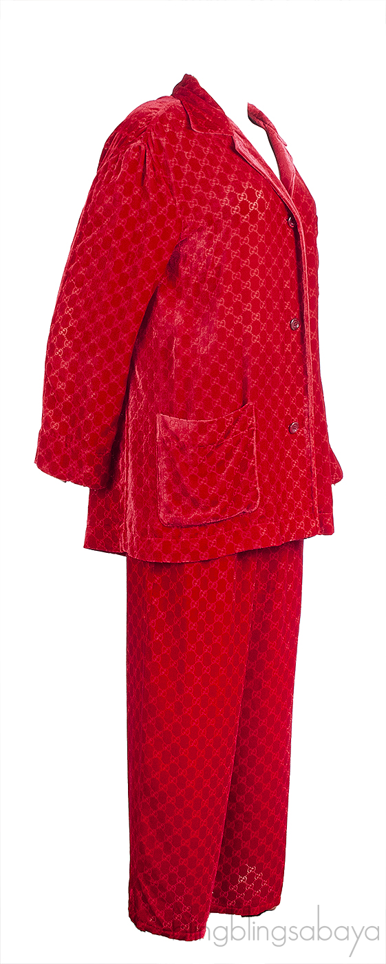 Gucci Red GG Devore Velvet Shirt & Wide Leg Trouser