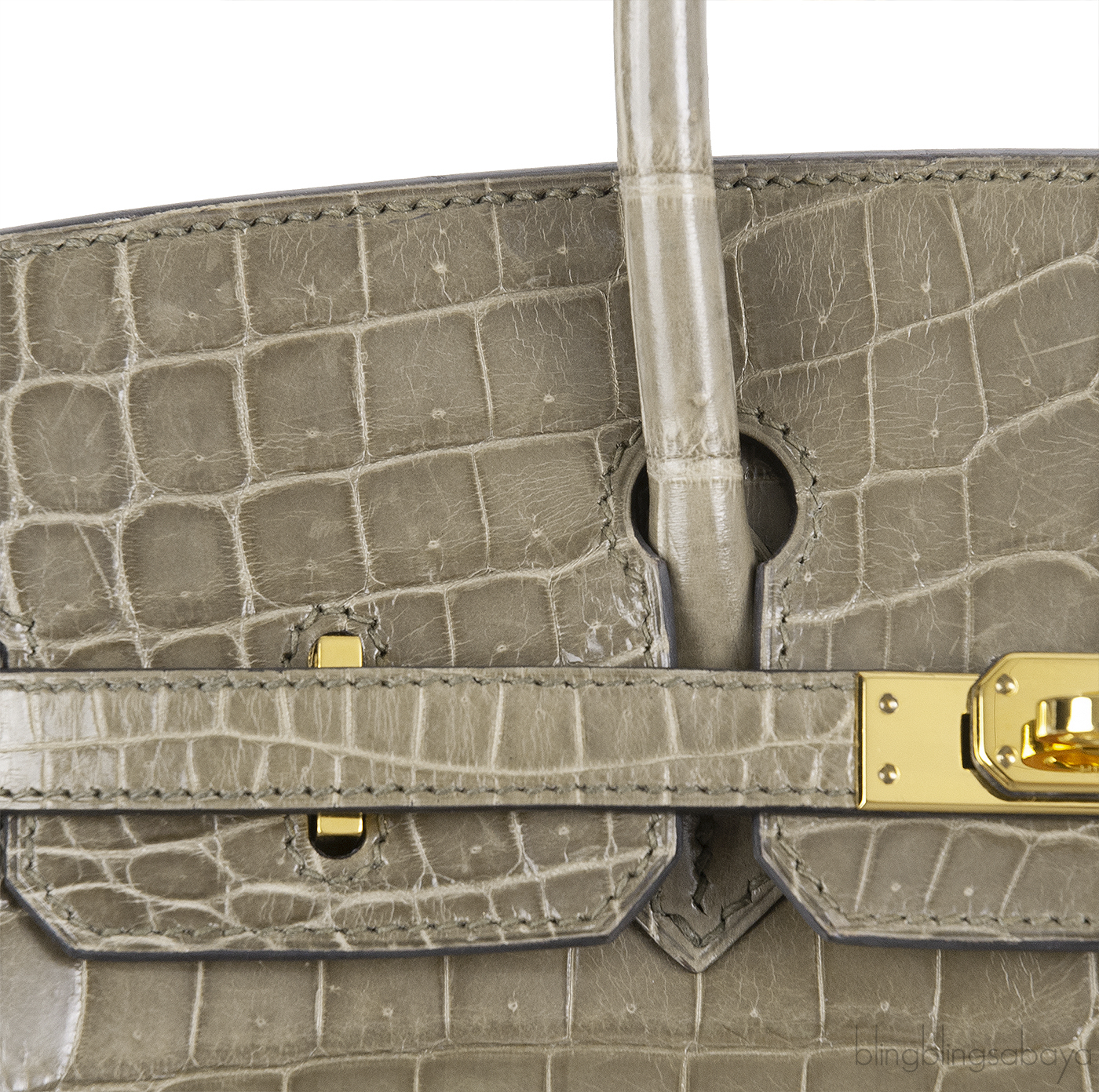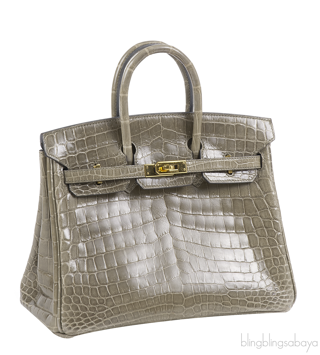 Hermes Birkin 25 Gris Tourterelle Crocodile GHW