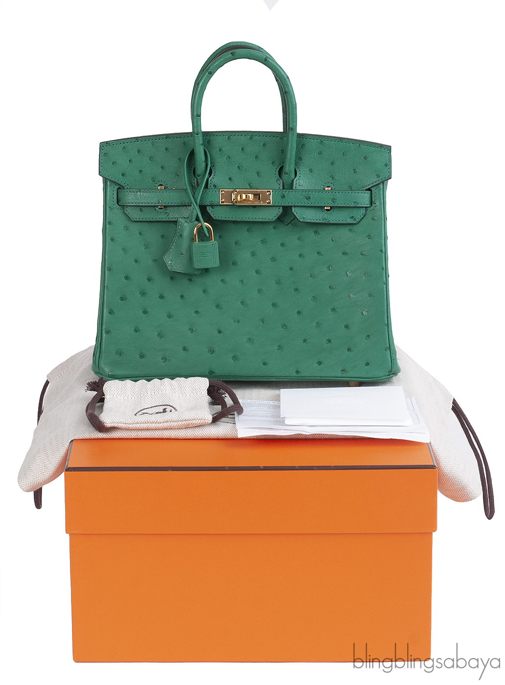 Hermes Birkin 25 Ostrich Vert Vertigo GHW