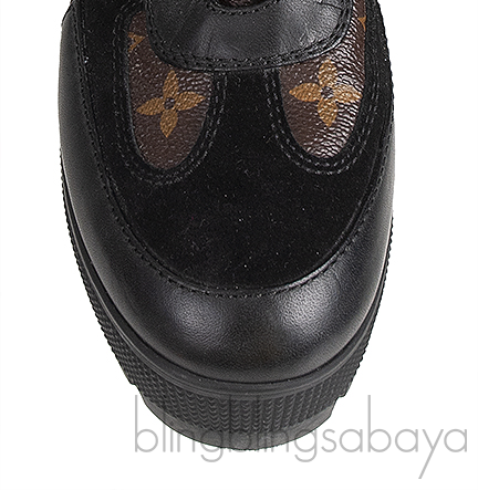 The Laureate Monogram Desert Boot from Louis Vuitton is made from black suede and features iconic Monogram canvas trim. It has round toes and lace-up vamps, along with leather-lined insoles and rubber soles. This version perfectly blends a versatile style with fashionable appeal.