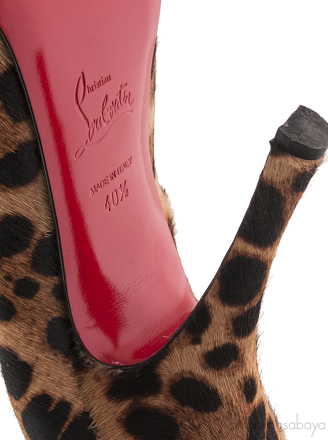 This Leopard Pony Peep Toe Pump from Christian Louboutin is made of animal print pony hair with nude leather lining. This shoes features a peep almond toe, leather lined insole, leather sole, covered heels measuring 120 mm high.