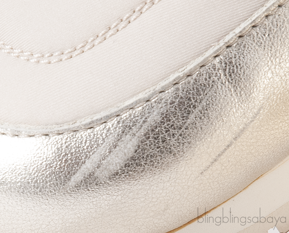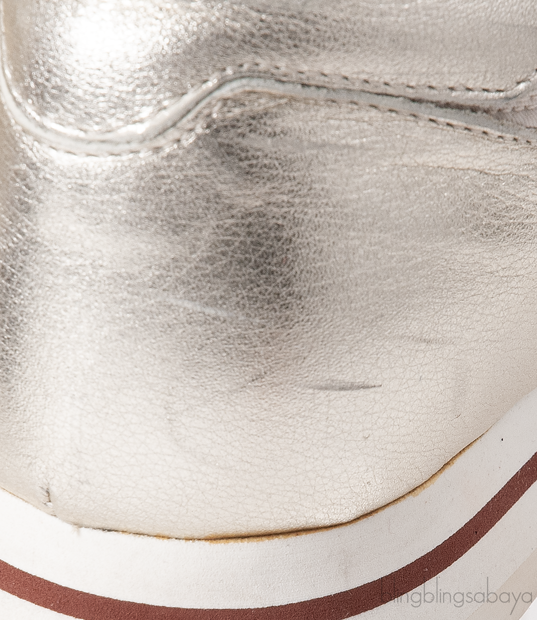 Very Good Condition! some noticeable scratches on the gold leather