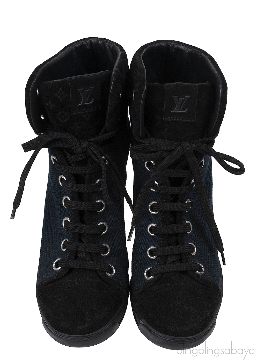 Louis Vuitton Blue & Black Monogram Wedge Boots