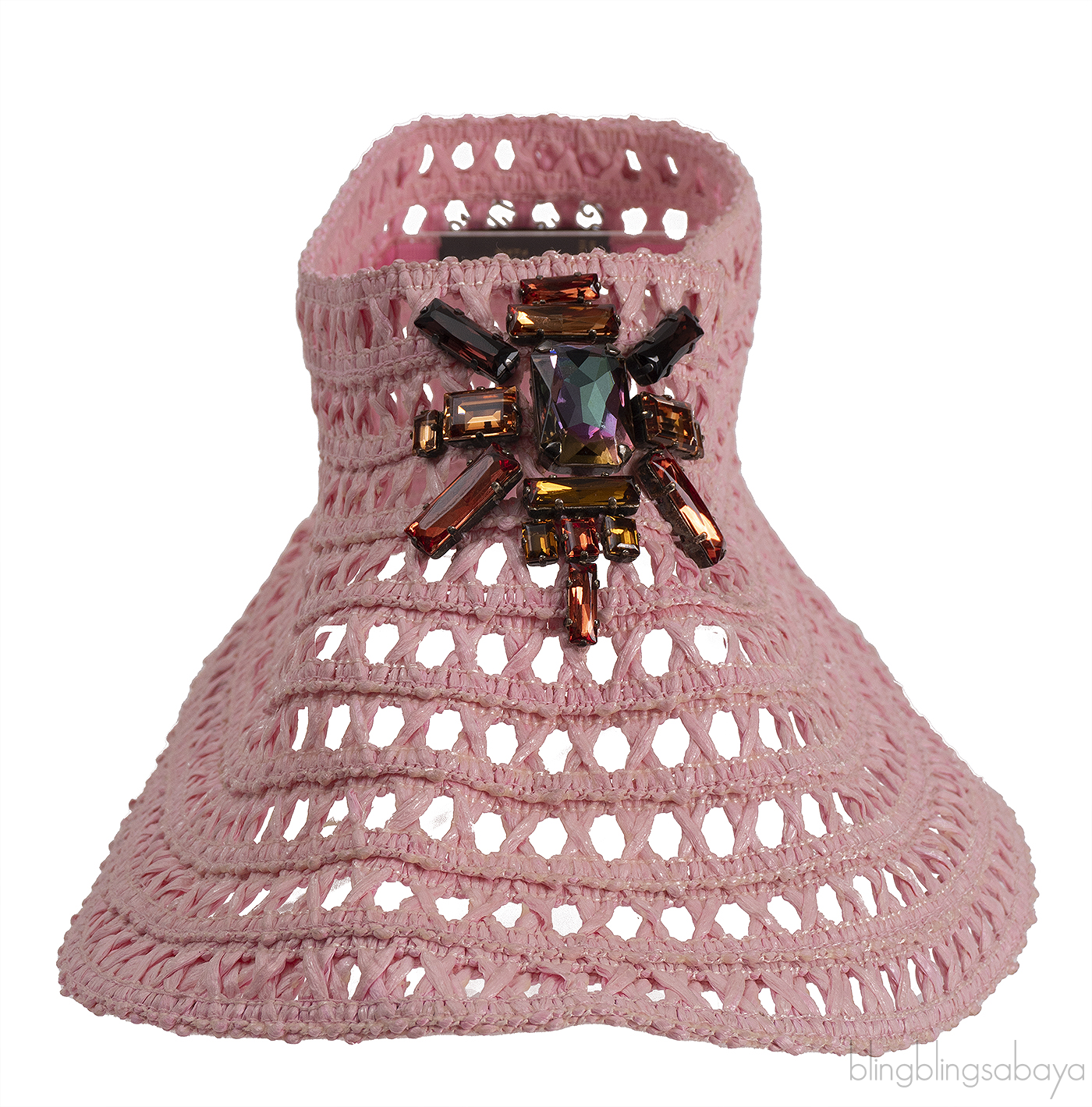 Pink and Crystal Raffia Crochet Visor from Louis Vuitton