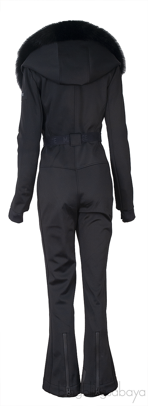 This Mackage Black Elle Hooded Belted Shearling-trimmed Padded Ski Suit is crafted in 82% Polyamide and 18% Elastane; filling 100% Polyester and 100% Fox Fur trim. This ski suit features a detachable fur hood, long sleeves, zip fastening , 2 front zipped pockets, zipped arm pocket, Water-repellent and windproof, cuffs; Scuff guards at inner legs and comes with elastic belt with buckle.