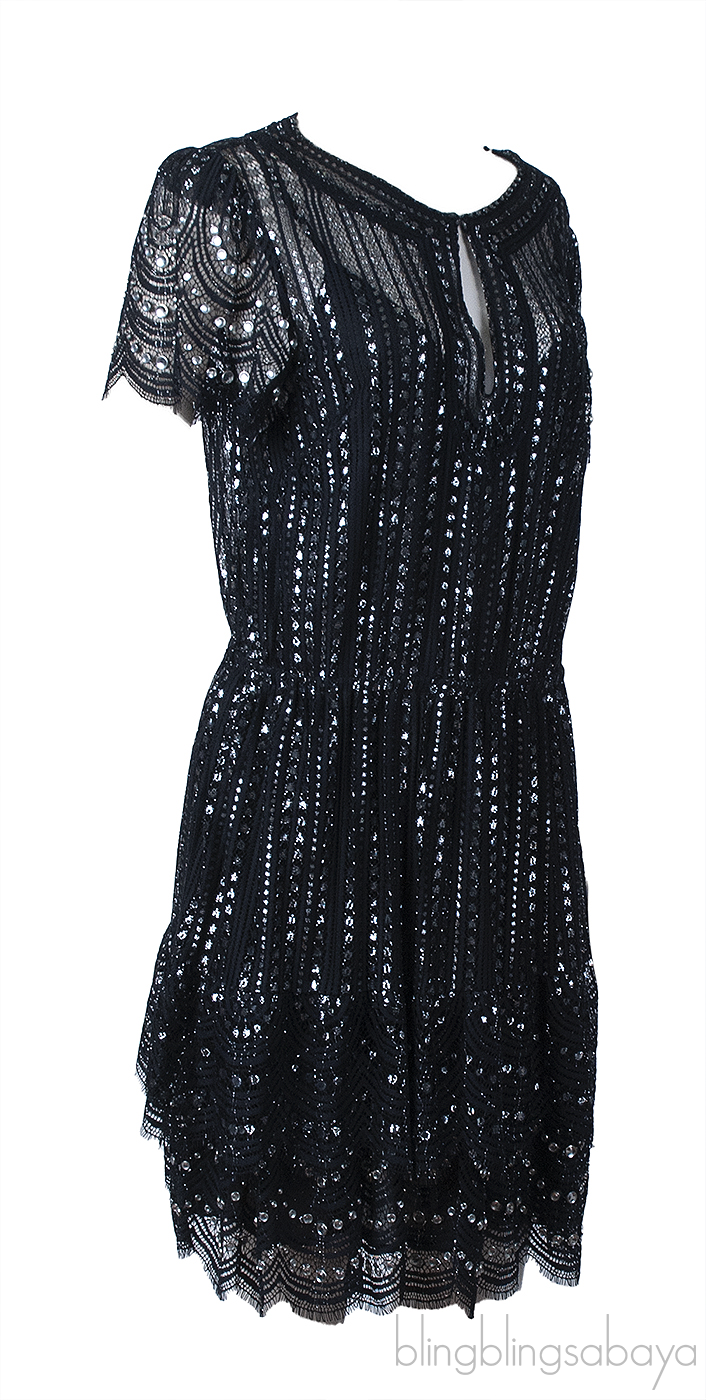 Michael Kors Black Lame Studded Lace Dress
