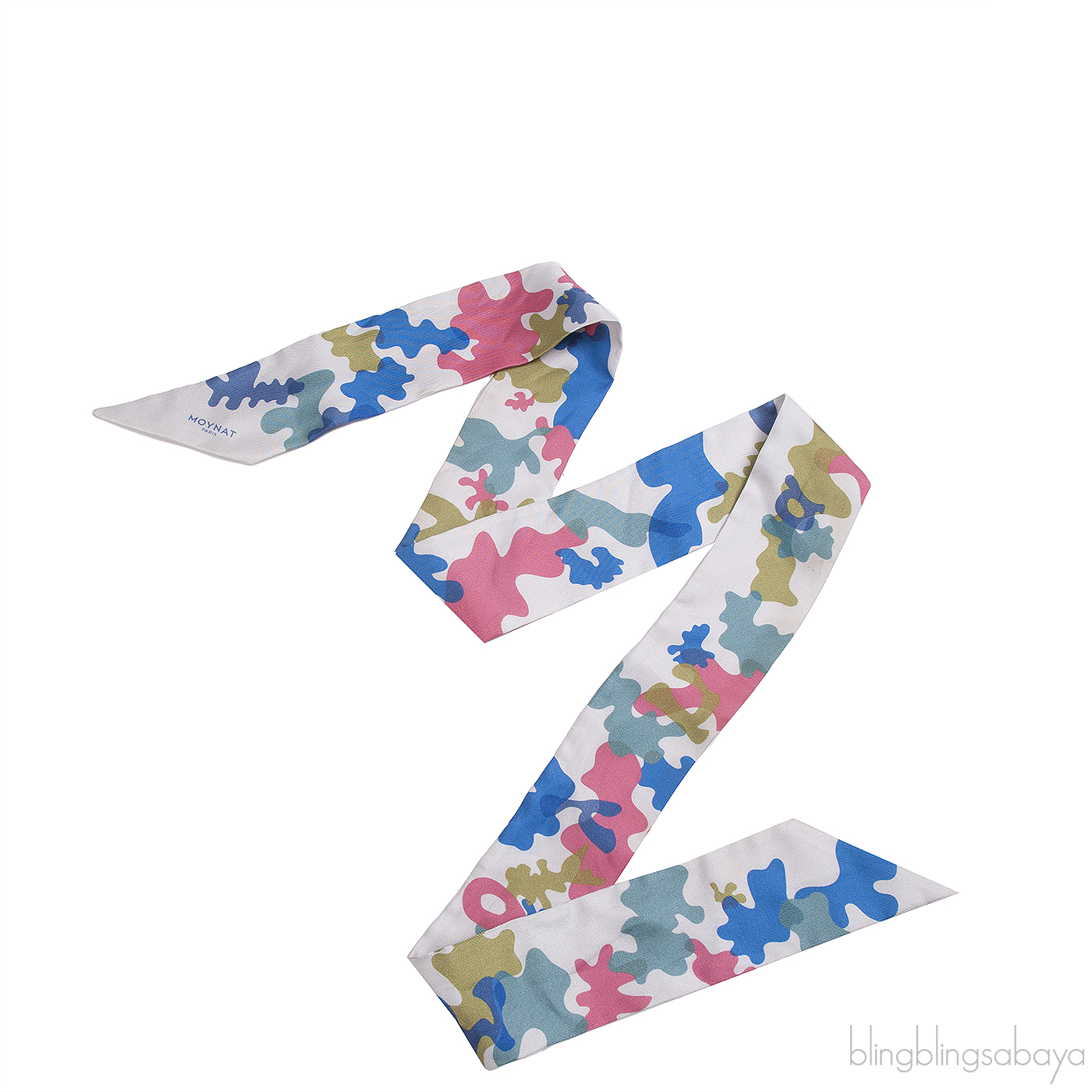 This Multi-color Abstract Print Twilly from Moynat is craftedfron white fabirc with multi-color abstract print, Moynat Paris printed on the