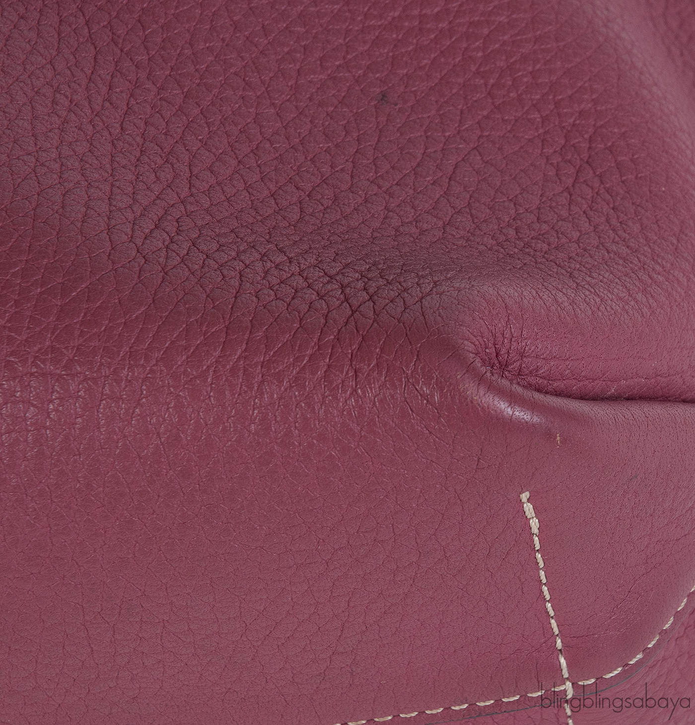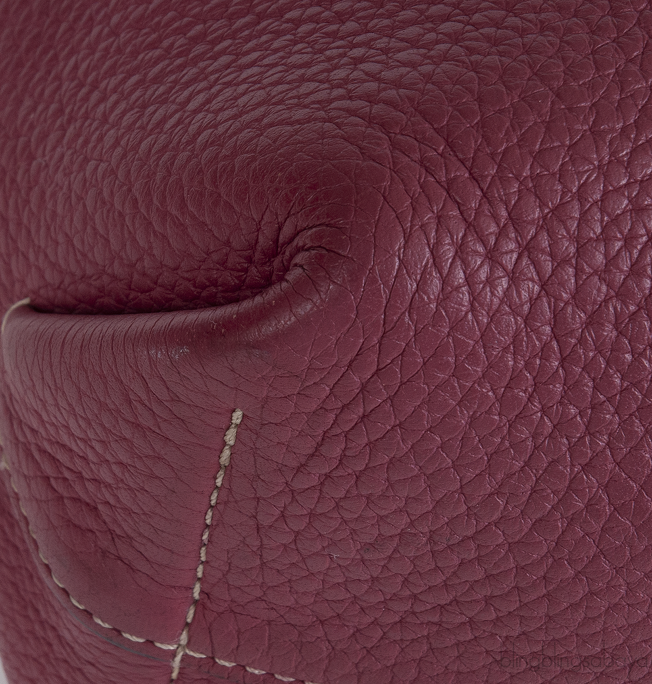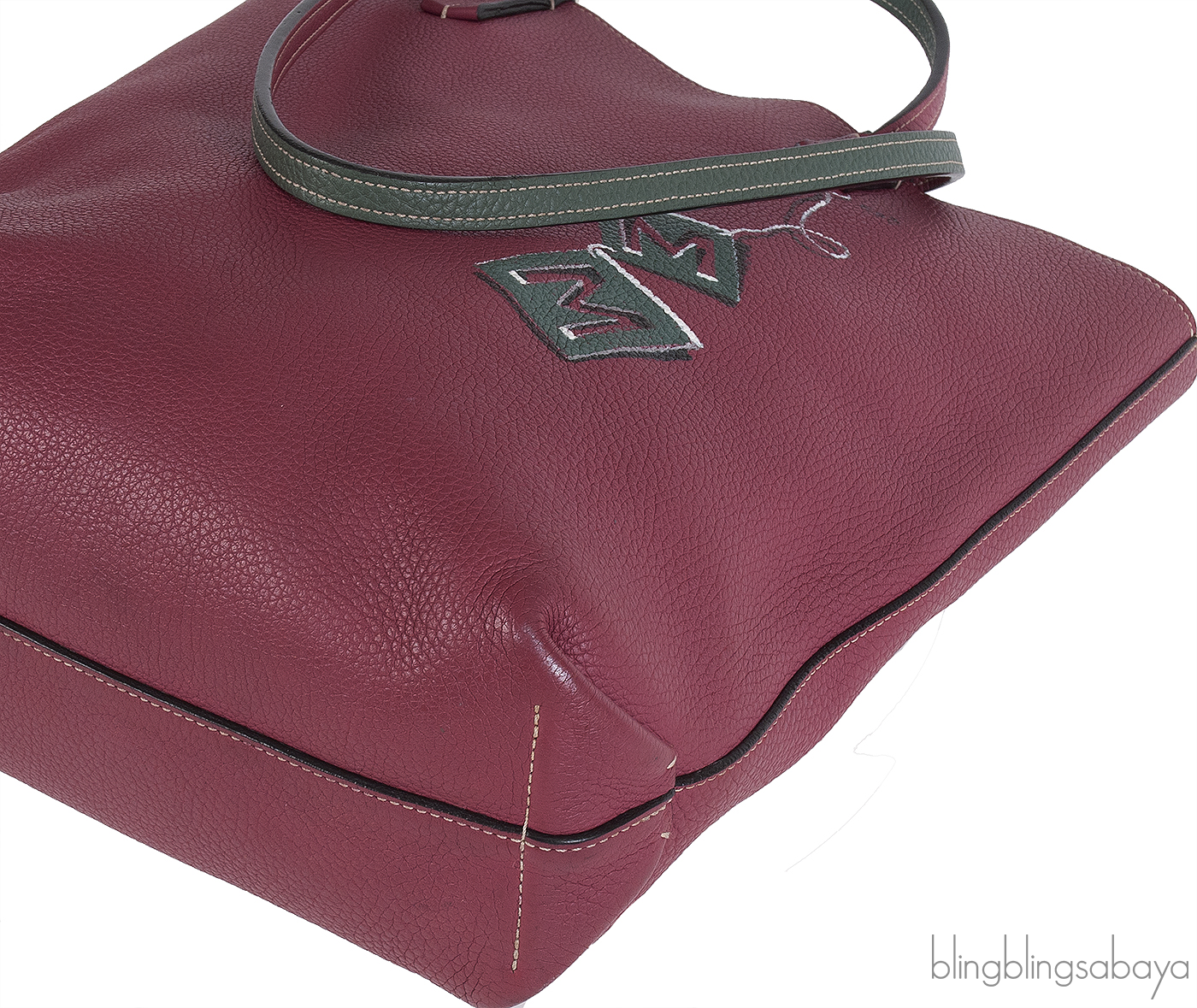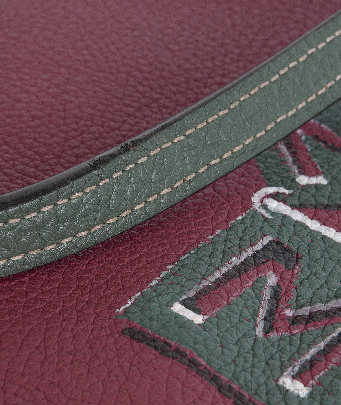 This Quattro Reversible Bi-color Leather Tote from Moynat is crafted from Taurillon Gex leather in bi-color hue. Featuring a burgundy tote with dark green hue in reverse with two optional straps for shoulder or hand carry.