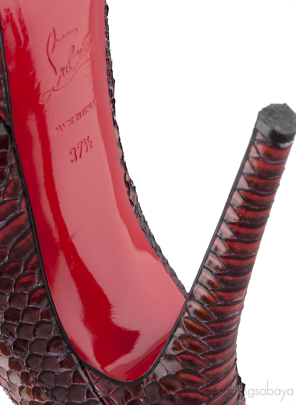 These Ombre Red Python Heels from Christian Louboutin is crafted in luxurious python in gradient red with nude leather lining. These heels features a round almond toe, nude leather lining, heels measuring 130 mm and red leather sole.