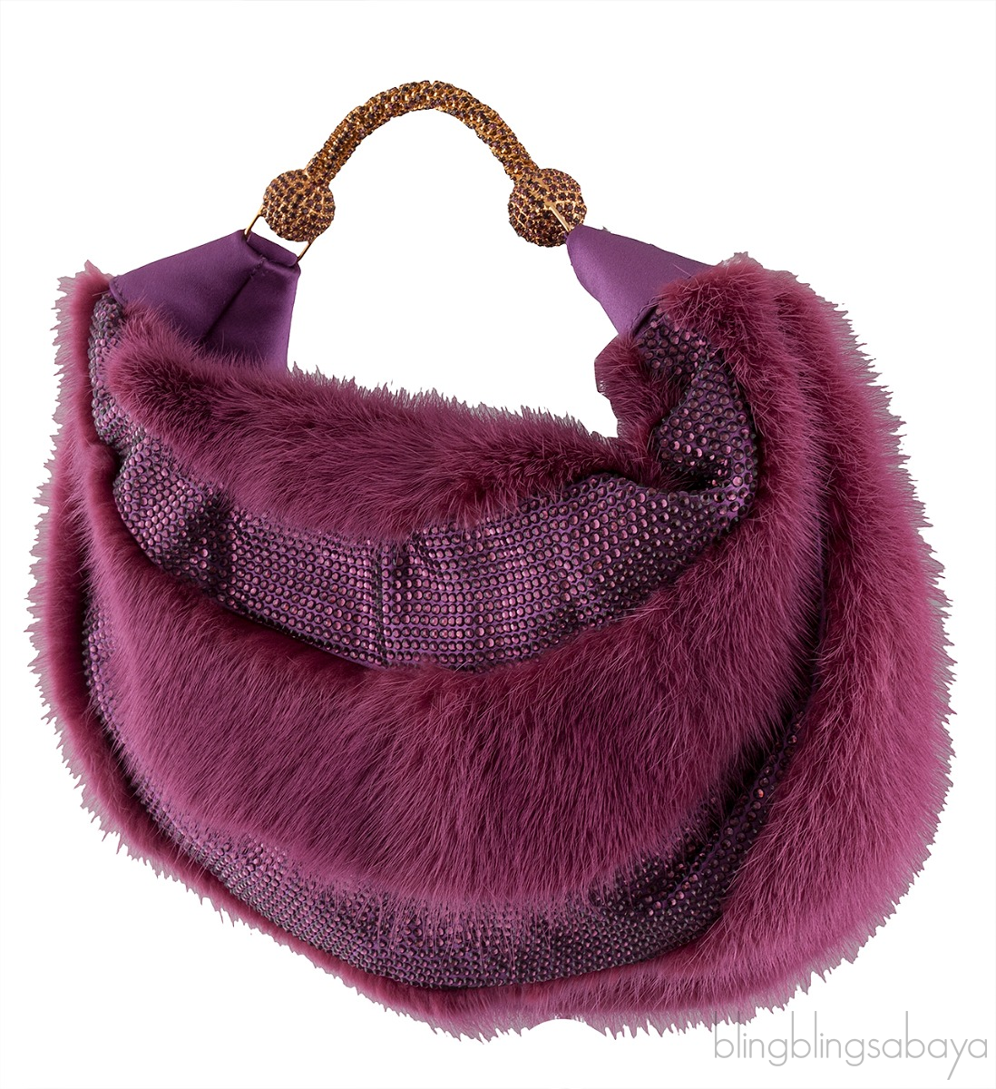 Purple Fur Crystal Handbag