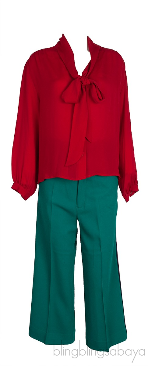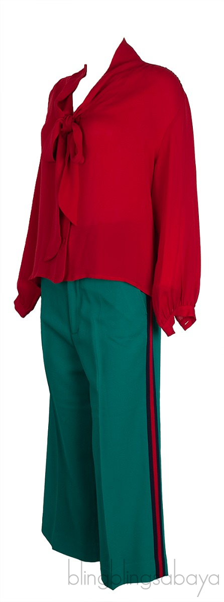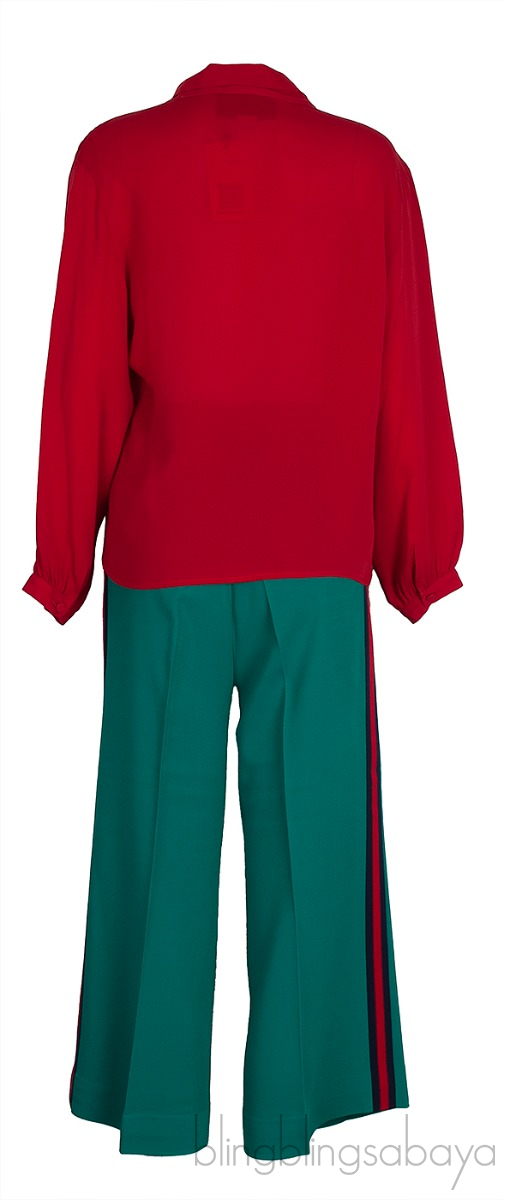Red Pussy Bow Longsleeve Blouse & Green Trouser from Gucci!