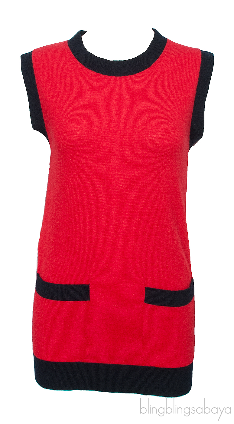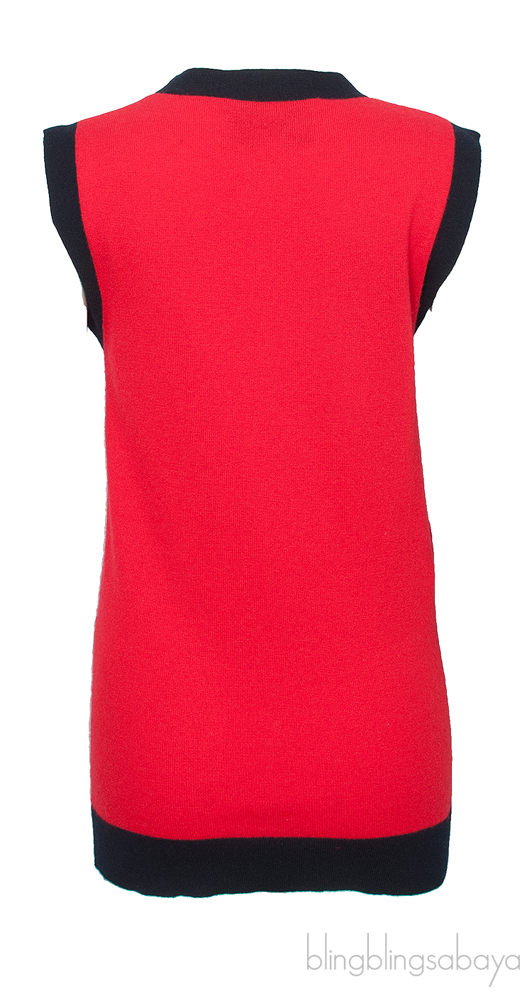 This Red Sleeveless Wool Top from Gucci is crafted in 70% Wool and 30% Cashmere. This top features a round neckline, sleeveless and hemline all trimmed in black hue and has two pockets at front.